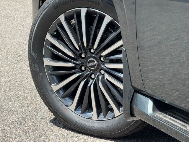 Convenience Package, 12 Speakers, 3rd row seats: split-bench, 4-Wheel Disc Brakes, ABS brakes, Adaptive suspension, Air Conditioning, Alloy wheels, AM/FM radio: SiriusXM, Anti-whiplash front head restraints, Auto High-beam Headlights, Auto tilt-away steering wheel, Auto-dimming door mirrors, Auto-dimming Rear-View mirror, Auto-leveling suspension, Automatic temperature control, Brake assist, Bumpers: body-color, Carpeted Floor Mats - Captain Chairs, Center Front Spoiler, Climate Controlled Heated & Ventilated Front Seats, Delay-off headlights, Driver door bin, Driver vanity mirror, Dual front impact airbags, Dual front side impact airbags, Electronic Stability Control, Emergency communication system: NissanConnect Services, Four wheel independent suspension, Front anti-roll bar, Front Bucket Seats, Front Center Armrest, Front dual zone A/C, Front fog lights, Front reading lights, Fully automatic headlights, Garage door transmitter: myQ Connected Garage, Genuine wood dashboard insert, Heads-Up Display, Heated door mirrors, Heated front seats, Heated rear seats, Heated steering wheel, HVAC memory, Illuminated entry, Illuminated Kick Plates, Illuminated Scuff Plate, Knee airbag, Leather steering wheel, Low tire pressure warning, Memory seat, Navigation System, Occupant sensing airbag, Outside temperature display, Overhead airbag, Overhead console, Panic alarm, Panoramic Headliner Illumination, Passenger door bin, Passenger vanity mirror, Power door mirrors, Power driver seat, Power Liftgate, Power moonroof, Power passenger seat, Power steering, Power windows, Premium Paint, ProPILOT Assist 2.1 (PLAT RESERVE Grade), Quilted Leather Seat Trim, Radio: NissanConnect w/SiriusXM 360L, Rain sensing wipers, Rear air conditioning, Rear anti-roll bar, Rear Bumper Protector, Rear reading lights, Rear window defroster, Rear window wiper, Reclining 3rd row seat, Remote keyless entry, Roof Rail Cross Bars, Security system, Speed control, Speed-sensing steering, Speed-Sensitive Wipers, Splash Guards, Split folding rear seat, Spoiler, Steering wheel memory, Steering wheel mounted audio controls, Tachometer, Telescoping steering wheel, Tilt steering wheel, Traction control, Trip computer, Turn signal indicator mirrors, Variably intermittent wipers, Ventilated front seats, Voltmeter, and Wheels: 22" Painted Alloy. Price includes dealer added accessories.