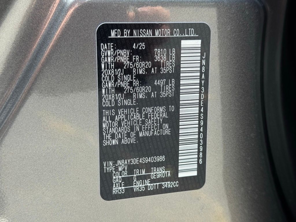 Gun Metallic/Super Black 2025 Nissan Armada PRO-4X 4WD 9-Speed Automatic 3.5L DOHC 4WD.