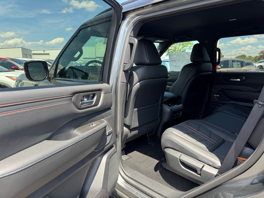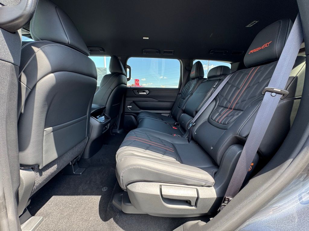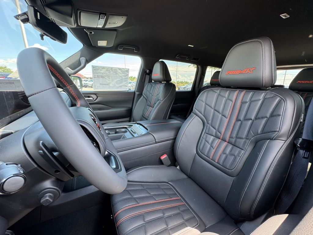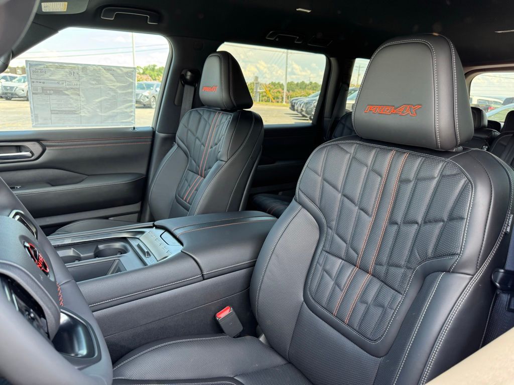 4WD, 12 Speakers, 2-Tone Roof, 3rd row seats: split-bench, 4-Wheel Disc Brakes, ABS brakes, Adaptive suspension, Air Conditioning, Alloy wheels, AM/FM radio: SiriusXM, Anti-whiplash front head restraints, Auto High-beam Headlights, Auto tilt-away steering wheel, Auto-dimming door mirrors, Auto-dimming Rear-View mirror, Auto-leveling suspension, Automatic temperature control, Brake assist, Bumpers: body-color, Delay-off headlights, Driver door bin, Driver vanity mirror, Dual front impact airbags, Dual front side impact airbags, Electronic Stability Control, Emergency communication system: NissanConnect Services, Four wheel independent suspension, Front anti-roll bar, Front Bucket Seats, Front Center Armrest, Front dual zone A/C, Front fog lights, Front reading lights, Front Tow Hooks, Fully automatic headlights, Garage door transmitter: myQ Connected Garage, Genuine wood dashboard insert, Heated door mirrors, Heated Front Bucket Seats, Heated front seats, Heated steering wheel, HVAC memory, Illuminated entry, Knee airbag, Leather steering wheel, Low tire pressure warning, Memory seat, Navigation System, Occupant sensing airbag, Outside temperature display, Overhead airbag, Overhead console, Panic alarm, Passenger door bin, Passenger vanity mirror, Power door mirrors, Power driver seat, Power Liftgate, Power passenger seat, Power steering, Power windows, PRO-4X Carpeted Floor Mats, PRO-4X Mud Guards, PRO-4X Unique Quilted Leather Seat Trim, Radio: NissanConnect w/SiriusXM 360L, Rain sensing wipers, Rear air conditioning, Rear anti-roll bar, Rear Bumper Protector, Rear reading lights, Rear seat center armrest, Rear window defroster, Rear window wiper, Reclining 3rd row seat, Remote keyless entry, Roof Rail Cross Bars, Security system, Speed control, Speed-sensing steering, Speed-Sensitive Wipers, Split folding rear seat, Spoiler, Steering wheel memory, Steering wheel mounted audio controls, Tachometer, Telescoping steering wheel, Tilt steering wheel, Traction control, Trip computer, Turn signal indicator mirrors, Variably intermittent wipers, Voltmeter, and Wheels: 20" Painted PRO-4X Alloy.