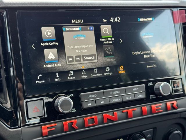 PRO Convenience Package (Bed Under-Rail Lighting, Heated Front Seats, Heated Outside Mirrors, Heated Steering Wheel, Intelligent Around View Monitor (I-AVM), Spray-In Bedliner, Trailer Hitch w/Wiring Harness, and Wireless Charging for Personal Devices), PRO Premium Package (Auto-Dimming Mirror, Auto-Tilt & Slide Sunroof w/Manual Shade, Fender Premium Audio System w/10 Speakers, HomeLink UGDO, Leather Seat Trim, Nissan Door-to-Door Navigation, Partial Under-Seat Storage Delete, and Traffic Sign Recognition (TSR)), Tow Package (T11) (DISC), 17" Painted Alloy Wheels, 2-Tone Beadlock Style Wheel Accessory, 3.692 Axle Ratio, 4-Wheel Disc Brakes, 6 Speakers, ABS brakes, Air Conditioning, Alloy wheels, AM/FM radio: SiriusXM, Antenna Update, Anti-whiplash front head restraints, Auto High-beam Headlights, Automatic temperature control, Blind Spot Warning, Brake assist, Bumpers: body-color, Delay-off headlights, Driver door bin, Driver vanity mirror, Dual front impact airbags, Dual front side impact airbags, Electronic Stability Control, Electronic Tailgate Lock, Emergency communication system, Essentials Kit, Front anti-roll bar, Front Bucket Seats, Front Center Armrest, Front dual zone A/C, Front fog lights, Front reading lights, Front wheel independent suspension, Fully automatic headlights, Illuminated entry, Knee airbag, Leather Shift Knob, Leather steering wheel, Low tire pressure warning, Mud Flap Accessory, Occupant sensing airbag, Off-Road Style Step Rails, Overhead airbag, Overhead console, Panic alarm, Passenger door bin, Passenger vanity mirror, Power door mirrors, Power driver seat, Power passenger seat, Power steering, Power windows, Premium Paint, PRO Embroidered Premium Cloth Seat Trim, PRO-4X Carpeted Floor Mats (DISC), Radio data system, Radio: SXM/AM/FM/AUX/USB Audio System, Rear anti-roll bar, Rear seat center armrest, Rear side impact airbag, Rear step bumper, Remote keyless entry, Security system, Speed control, Speed-sensing steering, Split folding rear seat, Steering wheel mounted audio controls, Tachometer, Telescoping steering wheel, Tilt steering wheel, Traction control, Trip computer, USB Charging Cable Kit, Variably intermittent wipers, Voltmeter, and Wireless Apple CarPlay/Wireless Android Auto. Price includes dealer added accessories.