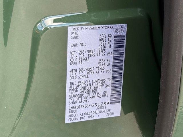 Tactical Green Metallic 2025 Nissan Frontier PRO-4X 4WD 9-Speed Automatic with Overdrive 3.8L DI DOHC 24V V6 This Vehicle qualifies for Complimentary 10 YEARS or 250,000 MILE LIMITED POWER TRAIN WARRANTY. HUGE VALUE! Visit dealer for complete details.