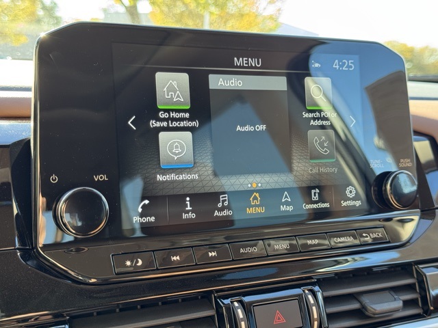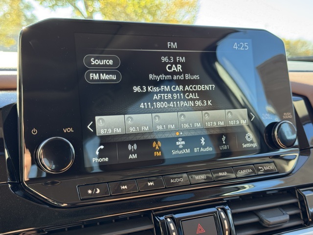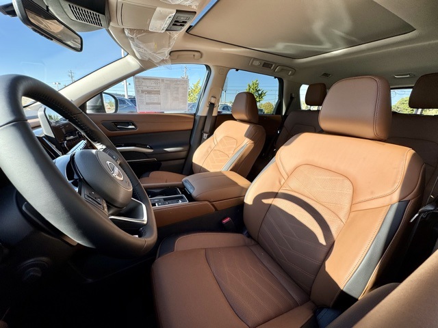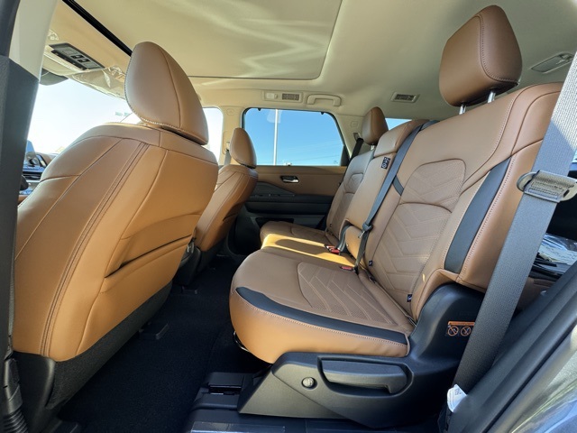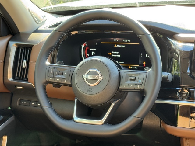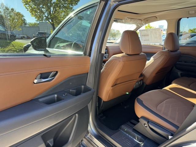Cargo Package (Cargo Area Protector, Cargo Net, and First Aid), 13 Speakers, 3rd row seats: bench, 4-Wheel Disc Brakes, ABS brakes, Air Conditioning, Alloy wheels, AM/FM radio: SiriusXM, Auto High-beam Headlights, Auto tilt-away steering wheel, Auto-dimming Rear-View mirror, Automatic temperature control, Bench Seat Carpeted Floor Mats (Set of 4), Bodyside moldings, Bose Premium Audio System, Brake assist, Bumpers: body-color, Climate Controlled Front Bucket Seats, Delay-off headlights, Driver door bin, Driver vanity mirror, Dual front impact airbags, Dual front side impact airbags, Electronic Stability Control, Emergency communication system, Exterior Parking Camera Rear, Four wheel independent suspension, Front anti-roll bar, Front Bucket Seats, Front Center Armrest, Front dual zone A/C, Front reading lights, Fully automatic headlights, Garage door transmitter: HomeLink, Heads-Up Display, Heated door mirrors, Heated front seats, Heated rear seats, Heated steering wheel, Illuminated entry, Knee airbag, Leather steering wheel, LED Fog Lamps, Low tire pressure warning, Memory seat, Navigation system: NissanConnect with Navigation and Services, NissanConnect featuring Apple CarPlay and Android Auto, NissanConnect w/Navigation & Services, Occupant sensing airbag, Outside temperature display, Overhead airbag, Overhead console, Panic alarm, Passenger door bin, Passenger vanity mirror, Power door mirrors, Power driver seat, Power Liftgate, Power moonroof, Power passenger seat, Power steering, Power windows, Radio data system, Radio: AM/FM Audio System, Rain sensing wipers, Rear air conditioning, Rear anti-roll bar, Rear reading lights, Rear seat center armrest, Rear side impact airbag, Rear window defroster, Rear window wiper, Reclining 3rd row seat, Remote keyless entry, Running Boards, Security system, Semi-Aniline Leather-Appointed Seating Surfaces, Speed control, Speed-sensing steering, Speed-Sensitive Wipers, Split folding rear seat, Spoiler, Steering wheel memory, Steering wheel mounted audio controls, Tachometer, Telescoping steering wheel, Tilt steering wheel, Traction control, Trip computer, Turn signal indicator mirrors, Variably intermittent wipers, Ventilated front seats, and Wheels: 20" x 8J Machined Alloy.