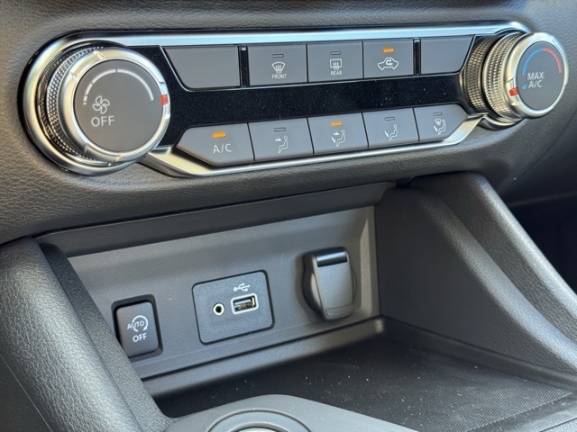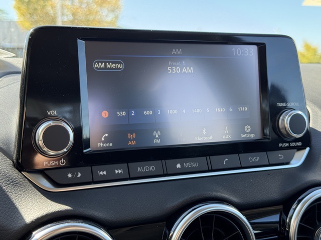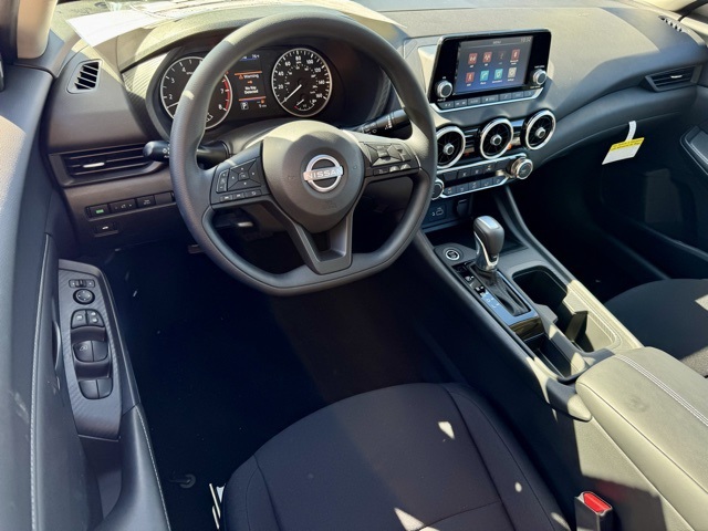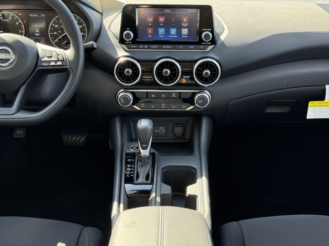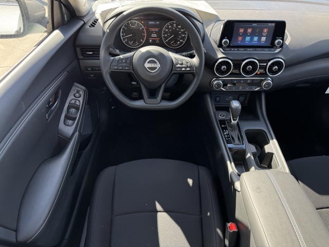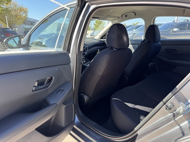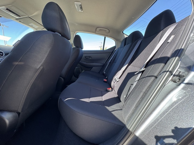16" Steel Wheels w/Full Wheel Covers, 4 Speakers, ABS brakes, Air Conditioning, AM/FM radio, Auto High-beam Headlights, Blind Spot Warning, Body Colored Splash Guards (4-Piece), Brake assist, Bumpers: body-color, Carpeted Floor Mats w/Trunk Mat, Cloth Seat Trim, Delay-off headlights, Driver door bin, Driver vanity mirror, Dual front impact airbags, Dual front side impact airbags, Electronic Stability Control, Four wheel independent suspension, Front anti-roll bar, Front Bucket Seats, Front Center Armrest, Front reading lights, Fully automatic headlights, Illuminated entry, Knee airbag, Low tire pressure warning, NissanConnect featuring Apple CarPlay and Android Auto, Occupant sensing airbag, Outside temperature display, Overhead airbag, Overhead console, Panic alarm, Passenger door bin, Passenger vanity mirror, Power door mirrors, Power steering, Power windows, Radio data system, Radio: AM/FM w/RDS/MP3/Aux-In, Rear anti-roll bar, Rear Parking Sensors, Rear side impact airbag, Rear window defroster, Remote keyless entry, Speed control, Speed-sensing steering, Split folding rear seat, Steering wheel mounted audio controls, Tachometer, Telescoping steering wheel, Tilt steering wheel, Traction control, Trip computer, and Variably intermittent wipers.