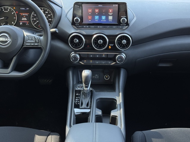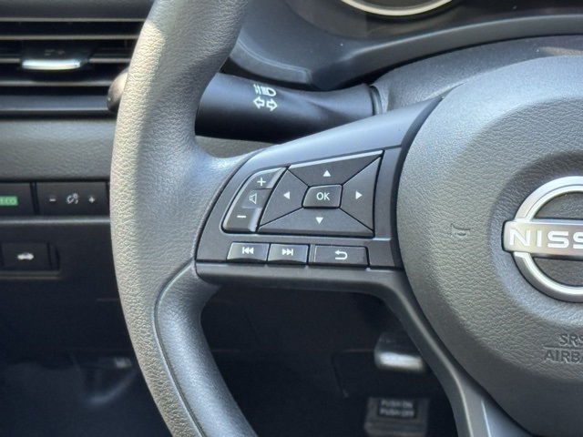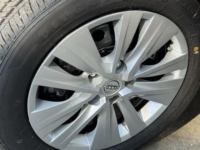 4 Speakers, ABS brakes, Air Conditioning, AM/FM radio, Auto High-beam Headlights, Blind Spot Warning, Body Colored Splash Guards (4-Piece), Brake assist, Bumpers: body-color, Carpeted Floor Mats with Trunk Mat, Cloth Seat Trim, Delay-off headlights, Driver door bin, Driver vanity mirror, Dual front impact airbags, Dual front side impact airbags, Electronic Stability Control, Four wheel independent suspension, Front anti-roll bar, Front Bucket Seats, Front Center Armrest, Front reading lights, Fully automatic headlights, Illuminated entry, Knee airbag, Low tire pressure warning, NissanConnect featuring Apple CarPlay and Android Auto, Occupant sensing airbag, Outside temperature display, Overhead airbag, Overhead console, Panic alarm, Passenger door bin, Passenger vanity mirror, Power door mirrors, Power steering, Power windows, Radio data system, Radio: AM/FM with RDS/MP3/Aux-in, Rear anti-roll bar, Rear Parking Sensors, Rear side impact airbag, Rear window defroster, Remote keyless entry, Speed control, Speed-sensing steering, Split folding rear seat, Steering wheel mounted audio controls, Tachometer, Telescoping steering wheel, Tilt steering wheel, Traction control, Trip computer, Variably intermittent wipers, and Wheels: 16" Steel with Full Covers.