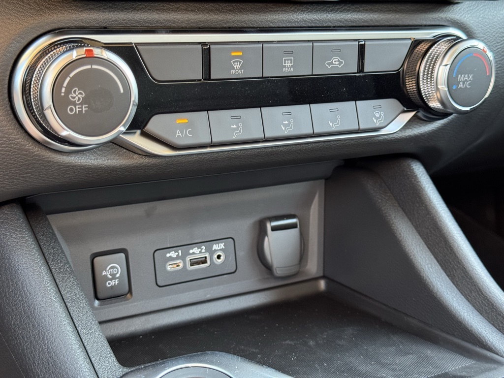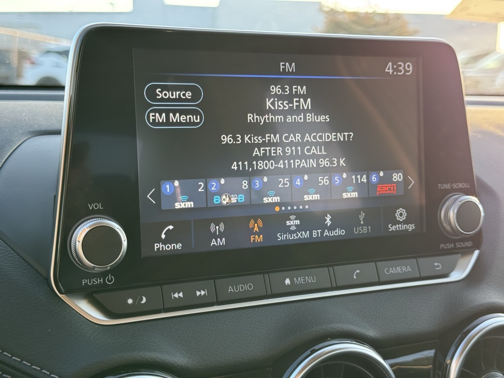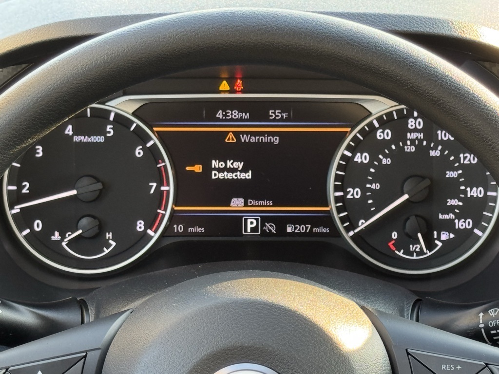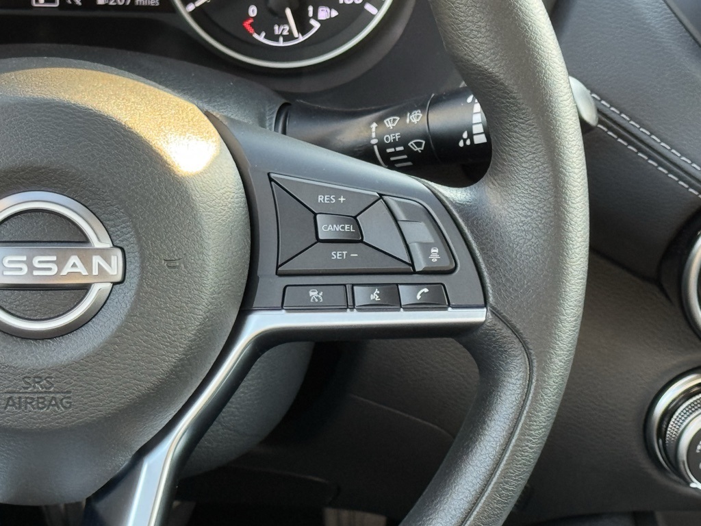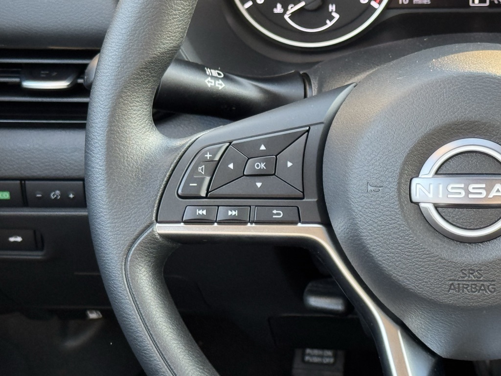 CVT with Xtronic, Charcoal Cloth, 16" Alloy Wheels, 4-Wheel Disc Brakes, 8 Speakers, ABS brakes, Air Conditioning, Alloy wheels, AM/FM radio: SiriusXM, Auto High-beam Headlights, Blind Spot Warning, Body Colored Splash Guards (4-Piece), Brake assist, Bumpers: body-color, Carpeted Floor Mats with Trunk Mat, Clear Rear Bumper Protector, Delay-off headlights, Door Sill Plates, Driver door bin, Driver vanity mirror, Dual front impact airbags, Dual front side impact airbags, Electronic Stability Control, Four wheel independent suspension, Front anti-roll bar, Front Bucket Seats, Front Center Armrest, Front reading lights, Fully automatic headlights, Illuminated entry, Knee airbag, Low tire pressure warning, NissanConnect featuring Apple CarPlay and Android Auto, Occupant sensing airbag, Outside temperature display, Overhead airbag, Overhead console, Panic alarm, Passenger door bin, Passenger vanity mirror, Power door mirrors, Power steering, Power windows, Premium Paint, Radio data system, Radio: AM/FM with RDS/MP3/Aux-in, Rear anti-roll bar, Rear Parking Sensors, Rear side impact airbag, Rear window defroster, Remote keyless entry, Security system, Speed control, Speed-sensing steering, Split folding rear seat, Steering wheel mounted audio controls, Tachometer, Telescoping steering wheel, Tilt steering wheel, Traction control, Trip computer, Upgraded Cloth Seat Trim, and Variably intermittent wipers.