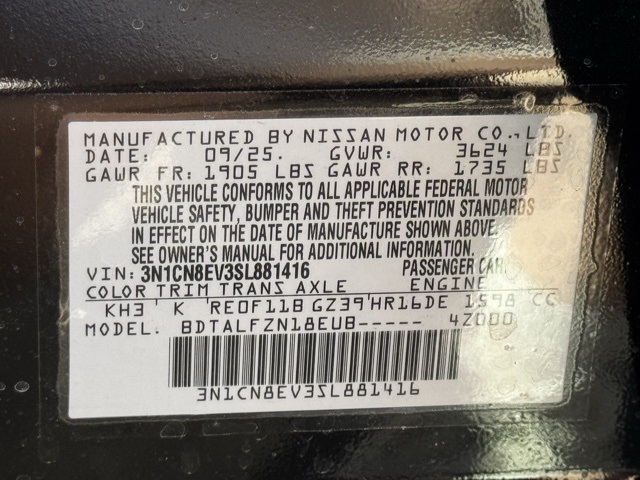 Super Black Metallic 2025 Nissan Versa 1.6 SV FWD CVT 1.6L I4 DOHC 16V 32/40 City/Highway MPG This Vehicle qualifies for Complimentary 10 YEARS or 250,000 MILE LIMITED POWER TRAIN WARRANTY. HUGE VALUE! ALSO Factory recommended maintenance is included on all new vehicle purchases at Miracle Nissan Of Augusta. We’ll cover these costs for two (2) years or 20,000 miles – whichever comes first. Visit dealer for complete details.