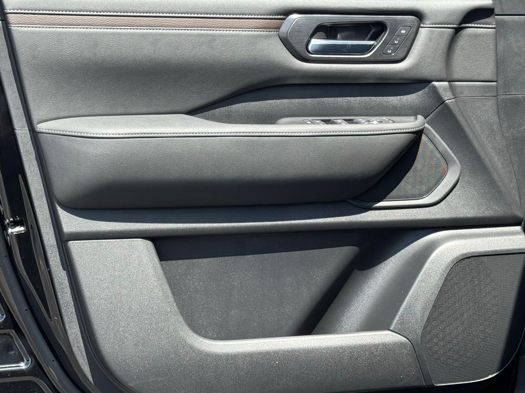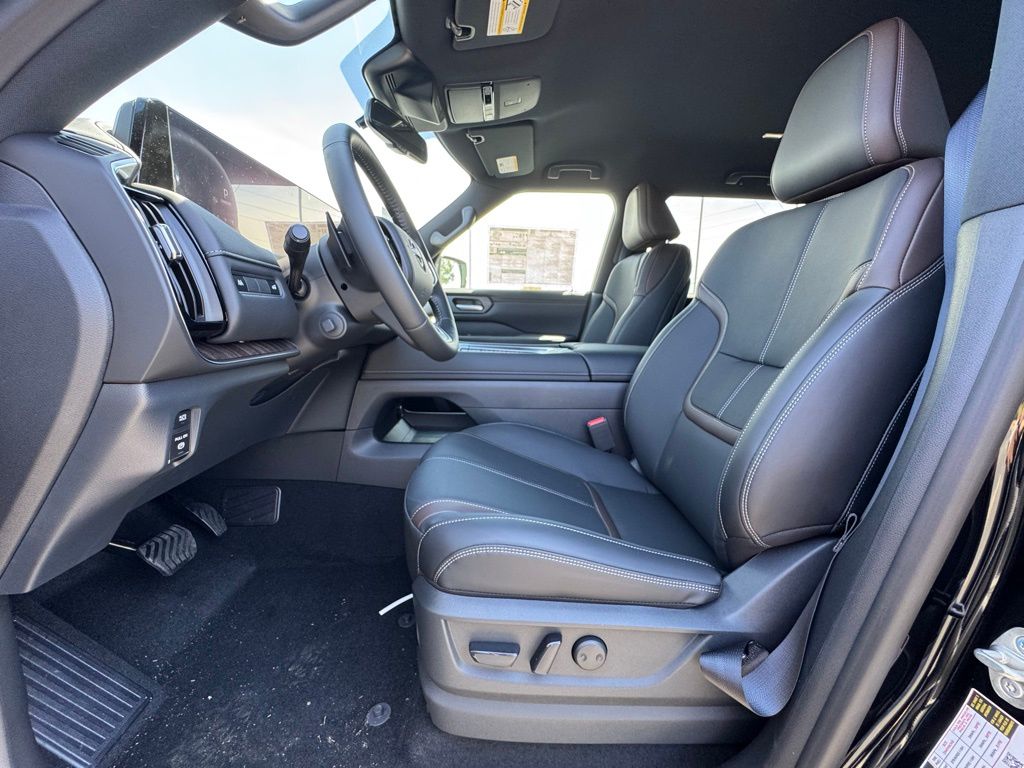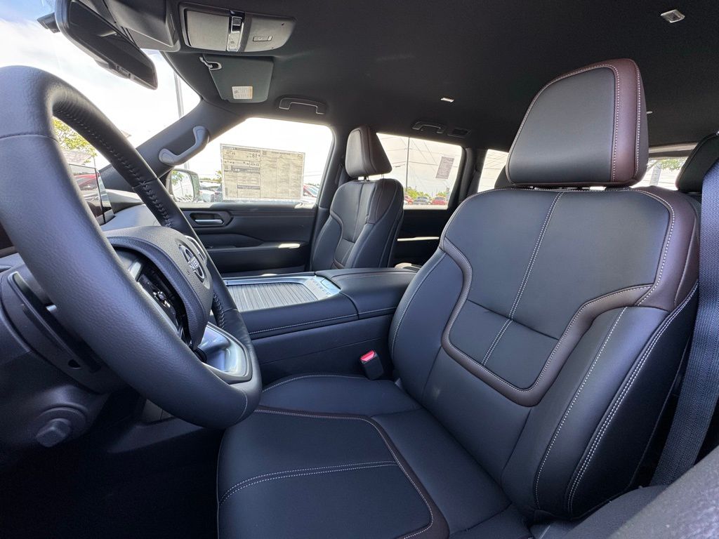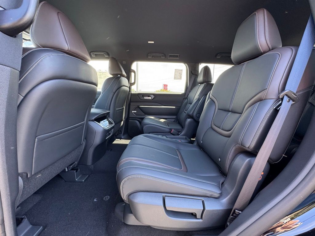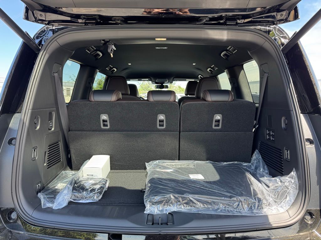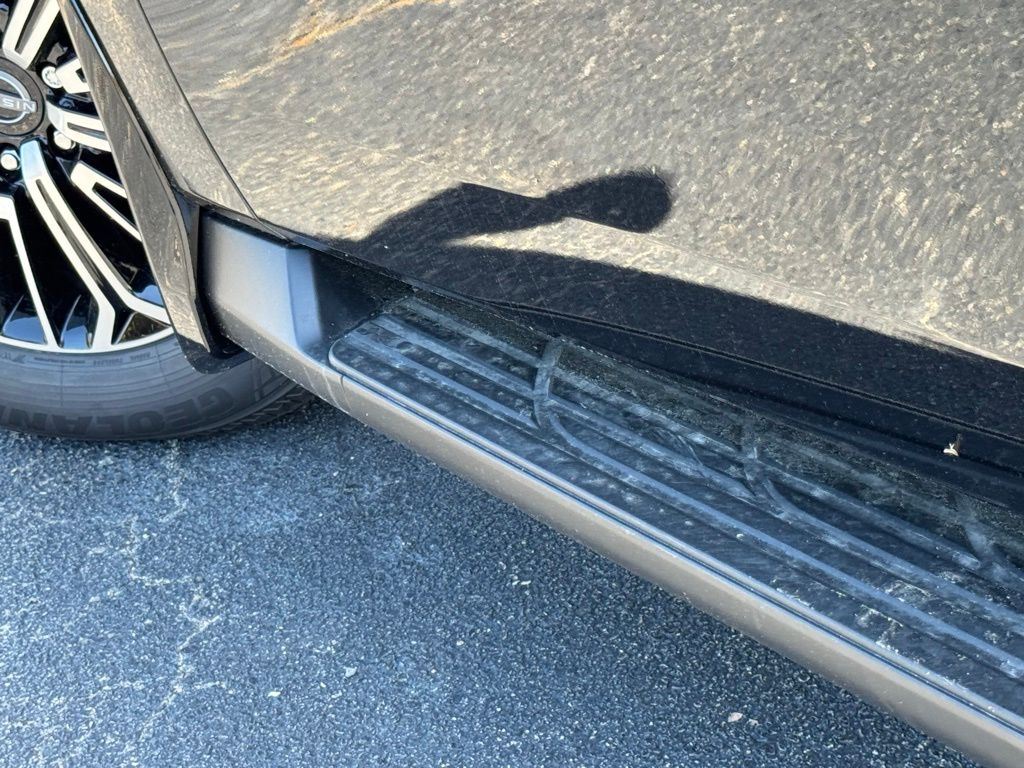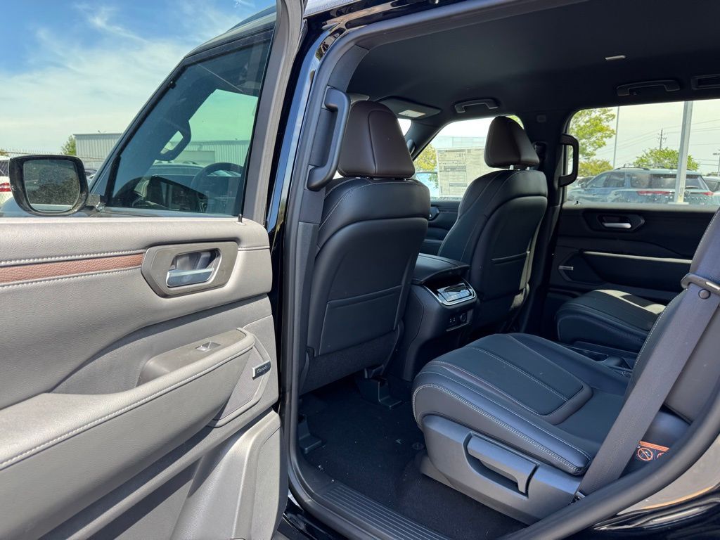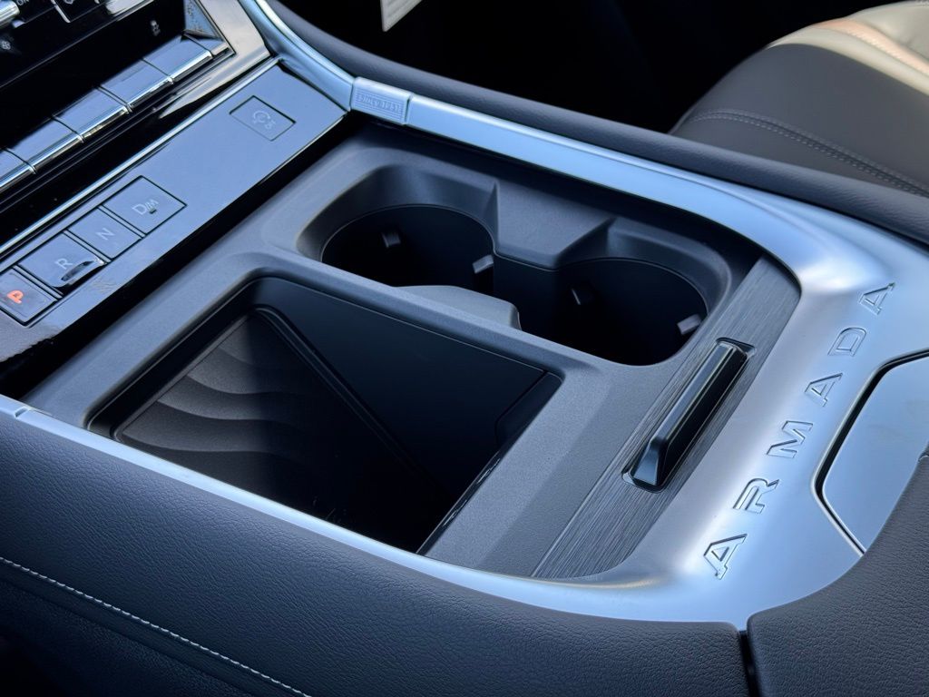 Captain's Chair Seat Package (2nd Row Center Console with Two Cupholders, 2nd Row Outboard Captain's Chairs with Armrests, and EZ Flex Second Row Seating System with One Touch Release), 12 Speakers, 3rd row seats: split-bench, 4-Wheel Disc Brakes, ABS brakes, Air Conditioning, Alloy wheels, AM/FM radio: SiriusXM w/360L, Anti-whiplash front head restraints, Apple CarPlay/Android Auto, Auto High-beam Headlights, Auto tilt-away steering wheel, Auto-dimming door mirrors, Auto-dimming Rear-View mirror, Auto-leveling suspension, Automatic temperature control, Brake assist, Bumpers: body-color, Carpeted Floor Mats with Captain Chairs, Center Front Spoiler, Compass, Cross Bars, Delay-off headlights, Driver door bin, Driver vanity mirror, Dual front impact airbags, Dual front side impact airbags, Electronic Stability Control, Emergency communication system: NissanConnect Services, Four wheel independent suspension, Front anti-roll bar, Front Bucket Seats, Front Center Armrest, Front dual zone A/C, Front reading lights, Fully automatic headlights, Garage door transmitter: myQ Connected Garage, Genuine wood dashboard insert, Heated door mirrors, Heated Front Bucket Seats, Heated front seats, Heated steering wheel, HVAC memory, Illuminated entry, Knee airbag, Leather steering wheel, Low tire pressure warning, Memory seat, Navigation system: Google Maps, Occupant sensing airbag, Outside temperature display, Overhead airbag, Overhead console, Panic alarm, Passenger door bin, Passenger vanity mirror, Power door mirrors, Power driver seat, Power Liftgate, Power passenger seat, Power steering, Power windows, Radio: NissanConnect with SiriusXM 360L, Rain sensing wipers, Rear air conditioning, Rear anti-roll bar, Rear Bumper Protector, Rear reading lights, Rear seat center armrest, Rear window defroster, Rear window wiper, Reclining 3rd row seat, Remote keyless entry, Security system, Speed control, Speed-sensing steering, Speed-Sensitive Wipers, Splash Guards, Split folding rear seat, Spoiler, Steering wheel memory, Steering wheel mounted audio controls, Tachometer, TailorFit Seat Trim, Telescoping steering wheel, Tilt steering wheel, Traction control, Trip computer, Turn signal indicator mirrors, USB Charging Cables, Variably intermittent wipers, Voltmeter, and Wheels: 20" x 8.5J Machined and Painted Alloy.