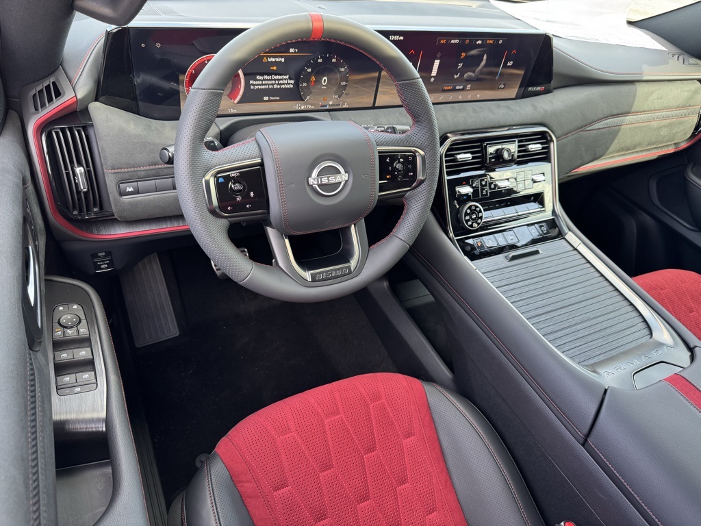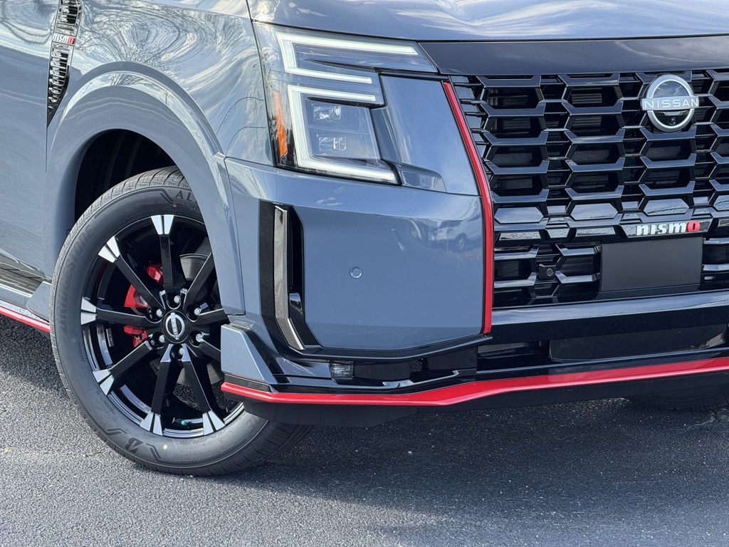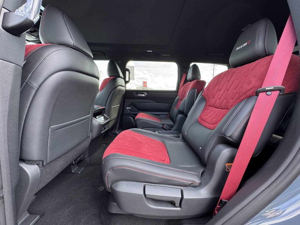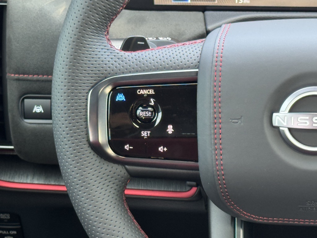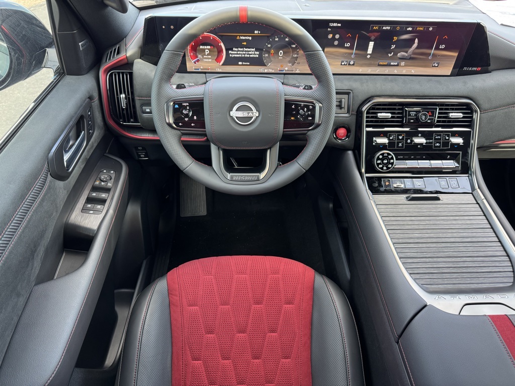 4WD, 12 Speakers, 3rd row seats: split-bench, 4-Wheel Disc Brakes, ABS brakes, Adaptive suspension, Air Conditioning, Alloy wheels, AM/FM radio: SiriusXM w/360L, Anti-whiplash front head restraints, Apple CarPlay/Android Auto, Auto High-beam Headlights, Auto tilt-away steering wheel, Auto-dimming door mirrors, Auto-dimming Rear-View mirror, Auto-leveling suspension, Automatic temperature control, Brake assist, Bumpers: body-color, Compass, Delay-off headlights, Driver door bin, Driver vanity mirror, Dual front impact airbags, Dual front side impact airbags, Electronic Stability Control, Emergency communication system: NissanConnect Services, Four wheel independent suspension, Front anti-roll bar, Front Bucket Seats, Front Center Armrest, Front dual zone A/C, Front fog lights, Front reading lights, Fully automatic headlights, Garage door transmitter: HomeLink, Genuine wood dashboard insert, Heated door mirrors, Heated Front Bucket Seats, Heated front seats, Heated steering wheel, HVAC memory, Illuminated entry, Knee airbag, Leather steering wheel, Low tire pressure warning, Memory seat, Navigation system: Google Maps, NISMO Carpeted Floor Mats, Nismo Suede Seat Trim, Occupant sensing airbag, Outside temperature display, Overhead airbag, Overhead console, Panic alarm, Passenger door bin, Passenger vanity mirror, Power door mirrors, Power driver seat, Power Liftgate, Power moonroof, Power passenger seat, Power steering, Power windows, Premium Paint, Radio: NissanConnect with SiriusXM 360L, Rain sensing wipers, Rear air conditioning, Rear anti-roll bar, Rear reading lights, Rear window defroster, Rear window wiper, Reclining 3rd row seat, Remote keyless entry, Security system, Speed control, Speed-sensing steering, Speed-Sensitive Wipers, Split folding rear seat, Spoiler, Steering wheel memory, Steering wheel mounted audio controls, Tachometer, Telescoping steering wheel, Tilt steering wheel, Traction control, Trip computer, Turn signal indicator mirrors, Variably intermittent wipers, Voltmeter, and Wheels: 22" Forged and Machined Alloy.