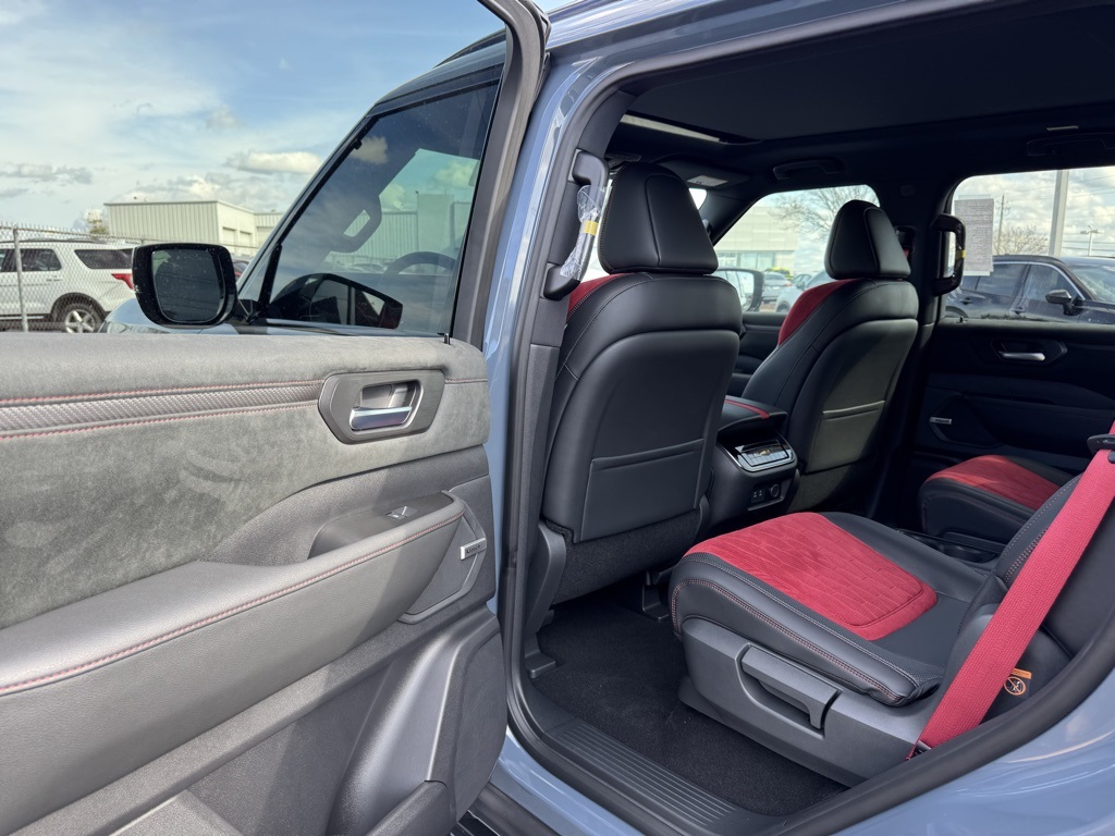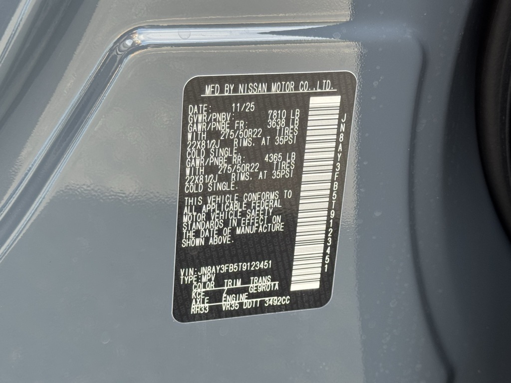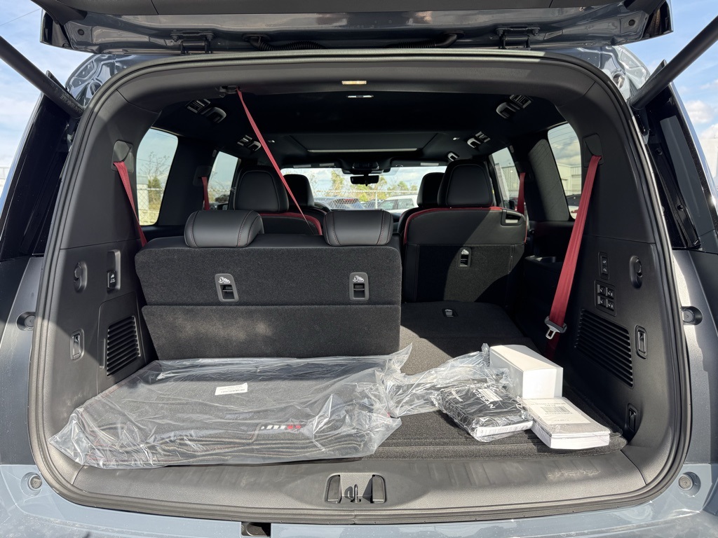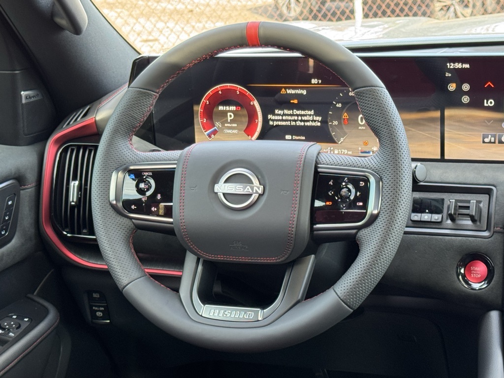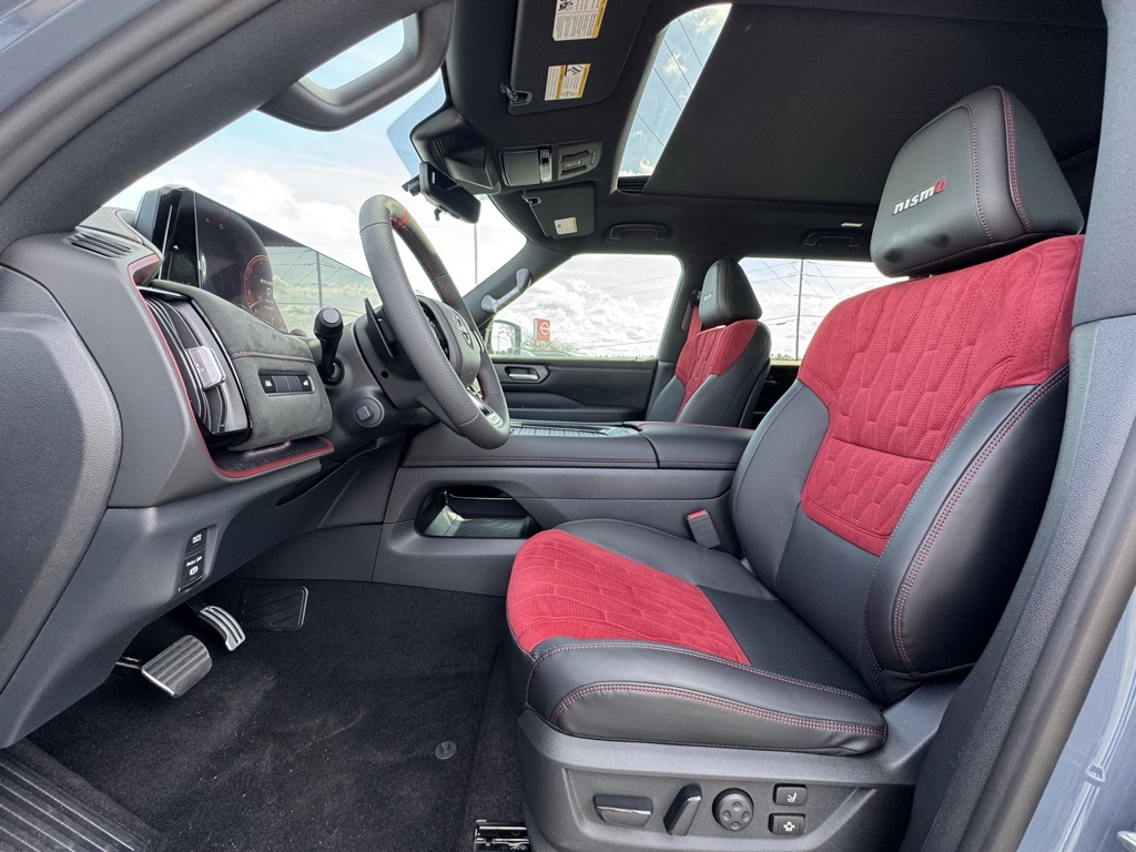 4WD, 12 Speakers, 3rd row seats: split-bench, 4-Wheel Disc Brakes, ABS brakes, Adaptive suspension, Air Conditioning, Alloy wheels, AM/FM radio: SiriusXM w/360L, Anti-whiplash front head restraints, Apple CarPlay/Android Auto, Auto High-beam Headlights, Auto tilt-away steering wheel, Auto-dimming door mirrors, Auto-dimming Rear-View mirror, Auto-leveling suspension, Automatic temperature control, Brake assist, Bumpers: body-color, Compass, Delay-off headlights, Driver door bin, Driver vanity mirror, Dual front impact airbags, Dual front side impact airbags, Electronic Stability Control, Emergency communication system: NissanConnect Services, Four wheel independent suspension, Front anti-roll bar, Front Bucket Seats, Front Center Armrest, Front dual zone A/C, Front fog lights, Front reading lights, Fully automatic headlights, Garage door transmitter: HomeLink, Genuine wood dashboard insert, Heated door mirrors, Heated Front Bucket Seats, Heated front seats, Heated steering wheel, HVAC memory, Illuminated entry, Knee airbag, Leather steering wheel, Low tire pressure warning, Memory seat, Navigation system: Google Maps, NISMO Carpeted Floor Mats, Nismo Suede Seat Trim, Occupant sensing airbag, Outside temperature display, Overhead airbag, Overhead console, Panic alarm, Passenger door bin, Passenger vanity mirror, Power door mirrors, Power driver seat, Power Liftgate, Power moonroof, Power passenger seat, Power steering, Power windows, Premium Paint, Radio: NissanConnect with SiriusXM 360L, Rain sensing wipers, Rear air conditioning, Rear anti-roll bar, Rear reading lights, Rear window defroster, Rear window wiper, Reclining 3rd row seat, Remote keyless entry, Security system, Speed control, Speed-sensing steering, Speed-Sensitive Wipers, Split folding rear seat, Spoiler, Steering wheel memory, Steering wheel mounted audio controls, Tachometer, Telescoping steering wheel, Tilt steering wheel, Traction control, Trip computer, Turn signal indicator mirrors, Variably intermittent wipers, Voltmeter, and Wheels: 22" Forged and Machined Alloy.