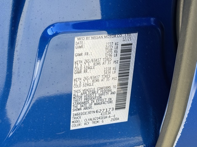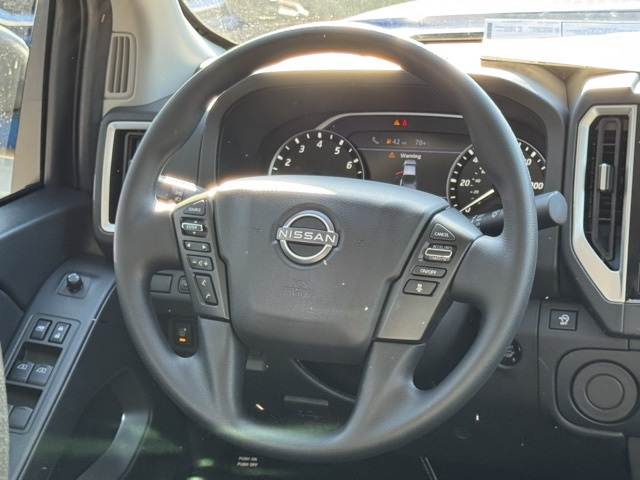 Tow Package, 17" Alloy Wheels, 3.692 Axle Ratio, 4-Wheel Disc Brakes, 6 Speakers, ABS brakes, Air Conditioning, Alloy wheels, AM/FM radio: SiriusXM, Anti-whiplash front head restraints, Auto High-beam Headlights, Blind Spot Warning, Brake assist, Bumpers: body-color, Carpeted Floor Mats, Delay-off headlights, Driver door bin, Driver vanity mirror, Drop-In Bed Liner & Bumper Step, Dual front impact airbags, Dual front side impact airbags, Electronic Stability Control, Emergency communication system, Front anti-roll bar, Front Bucket Seats, Front Center Armrest, Front reading lights, Front wheel independent suspension, Fully automatic headlights, Illuminated entry, Knee airbag, Low tire pressure warning, Occupant sensing airbag, Overhead airbag, Overhead console, Panic alarm, Passenger door bin, Passenger vanity mirror, Power door mirrors, Power driver seat, Power steering, Power windows, Premium Cloth Seat Trim, Premium Paint, Radio data system, Radio: SXM/AM/FM/AUX/USB Audio System, Rear anti-roll bar, Rear seat center armrest, Rear side impact airbag, Rear step bumper, Remote keyless entry, Security system, Speed control, Speed-sensing steering, Splash Guards, Split folding rear seat, Steering wheel mounted audio controls, Tachometer, Telescoping steering wheel, Tilt steering wheel, Tow/Haul Mode Switch, Traction control, Trip computer, Variably intermittent wipers, Voltmeter, and Wireless Apple CarPlay/Wireless Android Auto. Price includes: $2500 - Nissan Customer Cash. Exp. 03/02/2026 Price includes dealer added accessories.
