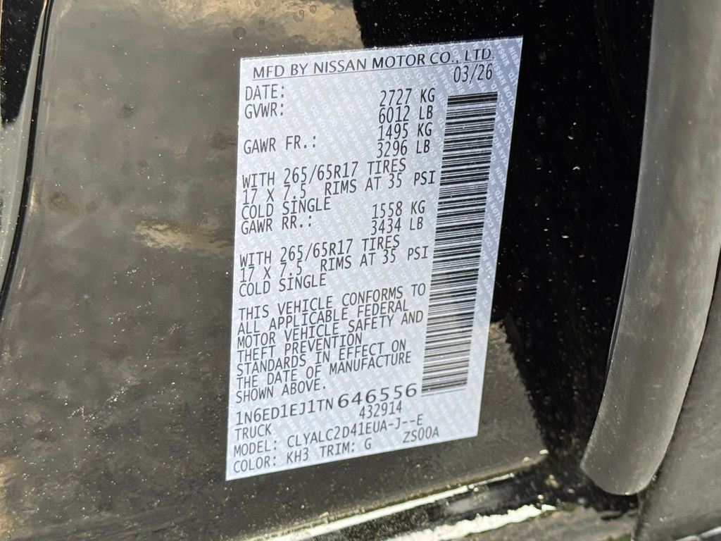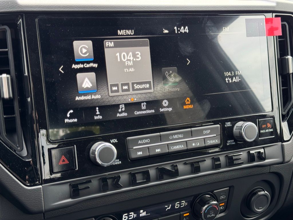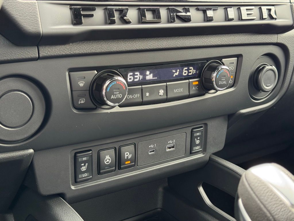 Dark Armor Package (Dark FRONTIER Tailgate Lettering, Dark Grille Surround/Mesh/Inner Fascia, Dark Mirror Caps, and Wheels: 17" Dark), SV Convenience Package (120V Power Outlet in Bed, 120V Power Outlet in Rear Center Console, Bed Under-Rail Lighting, Heated Front Seats, Heated Leather Steering Wheel, Heated Outside Mirrors, HVAC Dual-Zone Front Auto a/C, I-Key with Request Switches on O/S Handles, Locking Glove Box, Remote Engine Starter, Spray-in Bedliner, Tow/Haul Mode Switch, Trailer Hitch with Wiring Harness, and Utili-Track System), Tow Package, 17" Alloy Wheels, 3.692 Axle Ratio, 4-Wheel Disc Brakes, 6 Speakers, ABS brakes, Air Conditioning, Alloy wheels, AM/FM radio, Anti-whiplash front head restraints, Auto High-beam Headlights, Black Tailgate Logo Insert, Blind Spot Warning, Brake assist, Bumpers: body-color, Carpeted Floor Mats, Delay-off headlights, Driver door bin, Driver vanity mirror, Dual front impact airbags, Dual front side impact airbags, Electronic Stability Control, Electronic Tailgate Lock, Emergency communication system, Front anti-roll bar, Front Bucket Seats, Front Center Armrest, Front reading lights, Front wheel independent suspension, Fully automatic headlights, Grille Accent Lighting, Illuminated entry, Knee airbag, Low tire pressure warning, Occupant sensing airbag, Overhead airbag, Overhead console, Panic alarm, Passenger door bin, Passenger vanity mirror, Power door mirrors, Power driver seat, Power steering, Power windows, Premium Cloth Seat Trim, Radio data system, Radio: SiriusXM/AM/FM/Auxiliary/USB Audio System, Rear anti-roll bar, Rear seat center armrest, Rear side impact airbag, Rear step bumper, Remote keyless entry, Security system, Speed control, Speed-sensing steering, Splash Guards, Split folding rear seat, Steering wheel mounted audio controls, Tachometer, Telescoping steering wheel, Tilt steering wheel, Traction control, Trip computer, Variably intermittent wipers, Voltmeter, and Wireless Apple CarPlay/Wireless Android Auto. Price includes all rebates: $3500 - Nissan Customer Cash. Exp. 05/04/2026