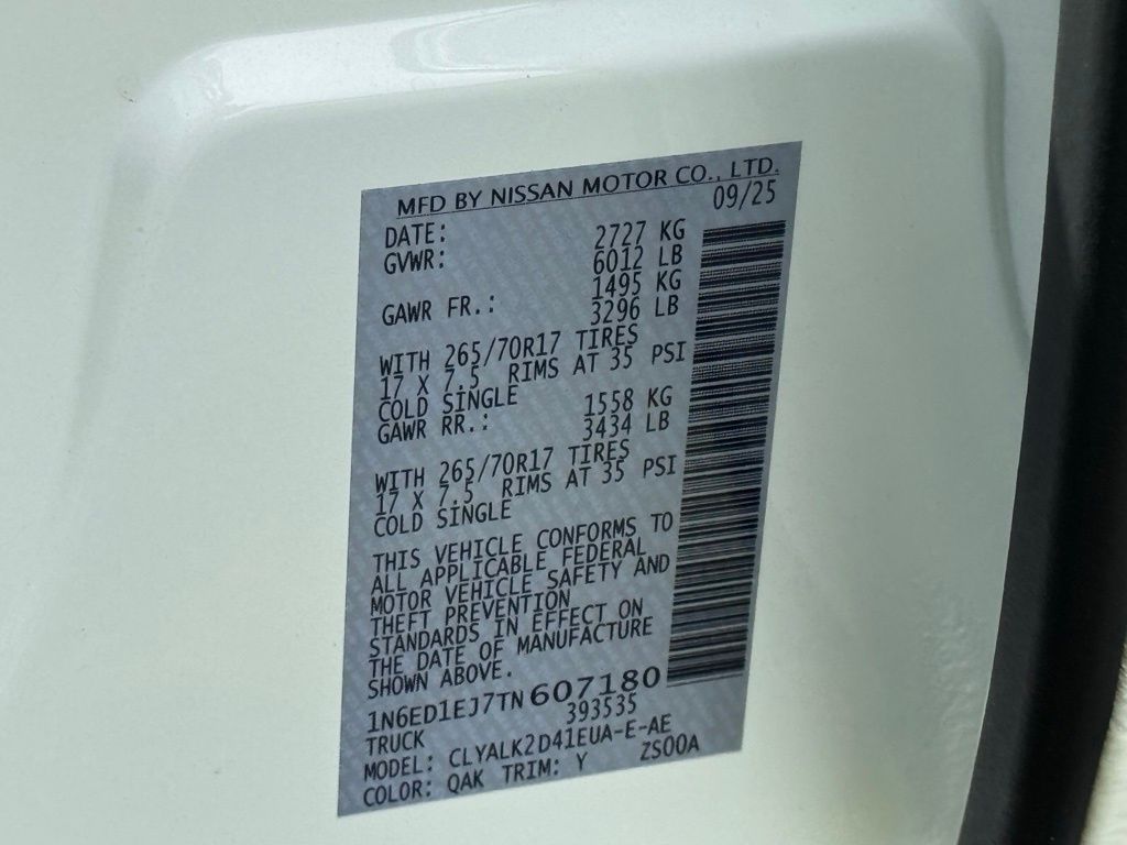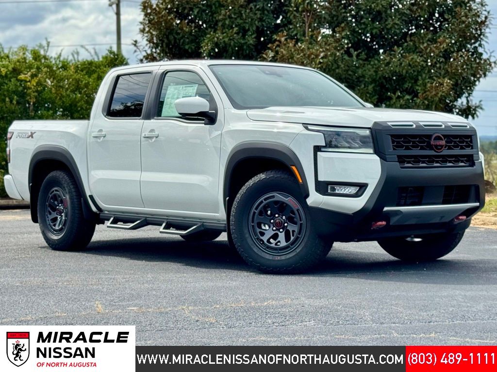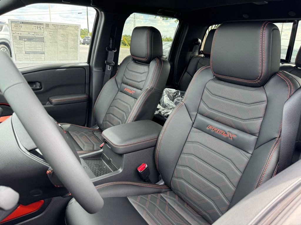 PRO Premium Package (Auto-Dimming Mirror, HomeLink UGDO, Leather Seat Trim, Nissan Door-to-Door Navigation, Partial Under-Seat Storage Delete, and Traffic Sign Recognition (TSR)), PRO-X Convenience Package (Heated Steering Wheel and Intelligent Around View Monitor (I-AVM)), 17" Painted Alloy Wheels, 3.692 Axle Ratio, 4-Wheel Disc Brakes, 6 Speakers, ABS brakes, Air Conditioning, Alloy wheels, Anti-whiplash front head restraints, Auto High-beam Headlights, Automatic temperature control, Blind Spot Warning, Brake assist, Bumpers: body-color, Carpeted Floor Mats, Delay-off headlights, Driver door bin, Driver vanity mirror, Dual front impact airbags, Dual front side impact airbags, Electronic Stability Control, Electronic Tailgate Lock, Emergency communication system, Front anti-roll bar, Front Bucket Seats, Front Center Armrest, Front dual zone A/C, Front fog lights, Front reading lights, Front wheel independent suspension, Fully automatic headlights, Heated Front Bucket Seats, Heated steering wheel, Illuminated entry, Knee airbag, Leather steering wheel, Low tire pressure warning, Mud Flaps, Occupant sensing airbag, Off-Road Style Step Rails, Overhead airbag, Overhead console, Panic alarm, Passenger door bin, Passenger vanity mirror, Power door mirrors, Power driver seat, Power passenger seat, Power steering, Power windows, PRO Embroidered Premium Cloth Seat Trim, Radio data system, Rear anti-roll bar, Rear seat center armrest, Rear side impact airbag, Rear step bumper, Remote keyless entry, Security system, Speed control, Speed-sensing steering, Split folding rear seat, Steering wheel mounted audio controls, Tachometer, Telescoping steering wheel, Tilt steering wheel, Traction control, Trip computer, Variably intermittent wipers, Voltmeter, and Wireless Apple CarPlay/Wireless Android Auto. Price includes all rebates: $3500 - Nissan Customer Cash. Exp. 05/04/2026
