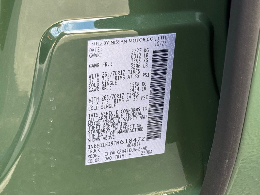 PRO Premium Package (Auto-Dimming Mirror, HomeLink UGDO, Leather Seat Trim, Nissan Door-to-Door Navigation, Partial Under-Seat Storage Delete, and Traffic Sign Recognition (TSR)), PRO-X Convenience Package (Heated Steering Wheel and Intelligent Around View Monitor (I-AVM)), 17" Painted Alloy Wheels, 3.692 Axle Ratio, 4-Wheel Disc Brakes, 6 Speakers, ABS brakes, Air Conditioning, Alloy wheels, Anti-whiplash front head restraints, Auto High-beam Headlights, Automatic temperature control, Blind Spot Warning, Brake assist, Bumpers: body-color, Carpeted Floor Mats, Delay-off headlights, Driver door bin, Driver vanity mirror, Dual front impact airbags, Dual front side impact airbags, Electronic Stability Control, Electronic Tailgate Lock, Emergency communication system, Front anti-roll bar, Front Bucket Seats, Front Center Armrest, Front dual zone A/C, Front fog lights, Front reading lights, Front wheel independent suspension, Fully automatic headlights, Heated Front Bucket Seats, Heated steering wheel, Illuminated entry, Knee airbag, Leather steering wheel, Low tire pressure warning, Mud Flaps, Occupant sensing airbag, Off-Road Style Step Rails, Overhead airbag, Overhead console, Panic alarm, Passenger door bin, Passenger vanity mirror, Power door mirrors, Power driver seat, Power passenger seat, Power steering, Power windows, Premium Paint, PRO Embroidered Premium Cloth Seat Trim, Radio data system, Rear anti-roll bar, Rear seat center armrest, Rear side impact airbag, Rear step bumper, Remote keyless entry, Security system, Speed control, Speed-sensing steering, Split folding rear seat, Steering wheel mounted audio controls, Tachometer, Telescoping steering wheel, Tilt steering wheel, Traction control, Trip computer, Variably intermittent wipers, Voltmeter, and Wireless Apple CarPlay/Wireless Android Auto. Price includes all rebates: $3500 - Nissan Customer Cash. Exp. 05/04/2026