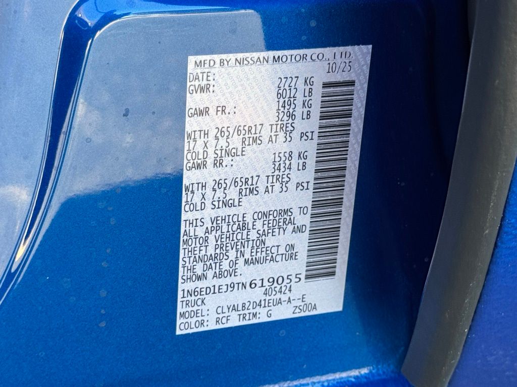 Tow Package, 17" Alloy Wheels, 3.692 Axle Ratio, 4-Wheel Disc Brakes, 6 Speakers, ABS brakes, Air Conditioning, Alloy wheels, Anti-whiplash front head restraints, Auto High-beam Headlights, Blind Spot Warning, Brake assist, Bumpers: body-color, Carpeted Floor Mats, Delay-off headlights, Driver door bin, Driver vanity mirror, Dual front impact airbags, Dual front side impact airbags, Electronic Stability Control, Emergency communication system, Front anti-roll bar, Front Bucket Seats, Front Center Armrest, Front reading lights, Front wheel independent suspension, Fully automatic headlights, Illuminated entry, Knee airbag, Low tire pressure warning, Occupant sensing airbag, Overhead airbag, Overhead console, Panic alarm, Passenger door bin, Passenger vanity mirror, Power door mirrors, Power driver seat, Power steering, Power windows, Premium Cloth Seat Trim, Premium Paint, Radio data system, Rear anti-roll bar, Rear seat center armrest, Rear side impact airbag, Rear step bumper, Remote keyless entry, Security system, Speed control, Speed-sensing steering, Splash Guards, Split folding rear seat, Steering wheel mounted audio controls, Tachometer, Telescoping steering wheel, Tilt steering wheel, Tow/Haul Mode Switch, Traction control, Trip computer, Variably intermittent wipers, Voltmeter, and Wireless Apple CarPlay/Wireless Android Auto. Price includes all rebates: $3500 - Nissan Customer Cash. Exp. 05/04/2026