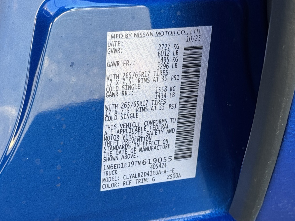 Tow Package, 17" Alloy Wheels, 3.692 Axle Ratio, 4-Wheel Disc Brakes, 6 Speakers, ABS brakes, Air Conditioning, Alloy wheels, AM/FM radio: SiriusXM, Anti-whiplash front head restraints, Auto High-beam Headlights, Blind Spot Warning, Brake assist, Bumpers: body-color, Carpeted Floor Mats, Delay-off headlights, Driver door bin, Driver vanity mirror, Drop-In Bed Liner & Bumper Step, Dual front impact airbags, Dual front side impact airbags, Electronic Stability Control, Emergency communication system, Front anti-roll bar, Front Bucket Seats, Front Center Armrest, Front reading lights, Front wheel independent suspension, Fully automatic headlights, Illuminated entry, Knee airbag, Low tire pressure warning, Occupant sensing airbag, Overhead airbag, Overhead console, Panic alarm, Passenger door bin, Passenger vanity mirror, Power door mirrors, Power driver seat, Power steering, Power windows, Premium Cloth Seat Trim, Premium Paint, Radio data system, Radio: SXM/AM/FM/AUX/USB Audio System, Rear anti-roll bar, Rear seat center armrest, Rear side impact airbag, Rear step bumper, Remote keyless entry, Security system, Speed control, Speed-sensing steering, Splash Guards, Split folding rear seat, Steering wheel mounted audio controls, Tachometer, Telescoping steering wheel, Tilt steering wheel, Tow/Haul Mode Switch, Traction control, Trip computer, Variably intermittent wipers, Voltmeter, and Wireless Apple CarPlay/Wireless Android Auto. Price includes all rebates: $2500 - Nissan Customer Cash. Exp. 01/05/2026