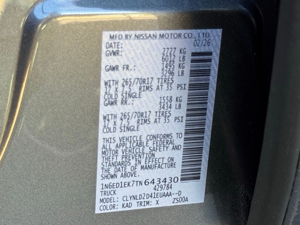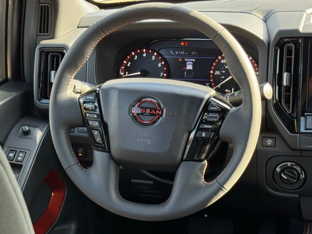 4WD, 17" Painted Alloy Wheels, 3.692 Axle Ratio, 4-Wheel Disc Brakes, 6 Speakers, ABS brakes, Air Conditioning, Alloy wheels, AM/FM radio: SiriusXM, Anti-whiplash front head restraints, Auto High-beam Headlights, Automatic temperature control, Blind Spot Warning, Brake assist, Bumpers: body-color, Delay-off headlights, Driver door bin, Driver vanity mirror, Drop-in Bed Liner & Bumper Step, Dual front impact airbags, Dual front side impact airbags, Electronic Stability Control, Emergency communication system, Essentials Kit, Front anti-roll bar, Front Bucket Seats, Front Center Armrest, Front dual zone A/C, Front fog lights, Front reading lights, Front wheel independent suspension, Fully automatic headlights, Heated Front Bucket Seats, Heated front seats, Heated steering wheel, Illuminated entry, Knee airbag, Leather steering wheel, Low tire pressure warning, Mud Flaps, Occupant sensing airbag, Off-Road Style Step Rails, Overhead airbag, Overhead console, Panic alarm, Passenger door bin, Passenger vanity mirror, Power door mirrors, Power driver seat, Power passenger seat, Power steering, Power windows, PRO Embroidered Premium Cloth Seat Trim, PRO-4X Carpeted Floor Mats, Radio data system, Radio: SiriusXM/AM/FM/Auxiliary/USB Audio System, Rear anti-roll bar, Rear seat center armrest, Rear side impact airbag, Rear step bumper, Remote keyless entry, Security system, Speed control, Speed-sensing steering, Split folding rear seat, Steering wheel mounted audio controls, Tachometer, Telescoping steering wheel, Tilt steering wheel, Traction control, Trip computer, Variably intermittent wipers, Voltmeter, and Wireless Apple CarPlay/Wireless Android Auto. Price includes all rebates: $3500 - Nissan Customer Cash. Exp. 05/04/2026