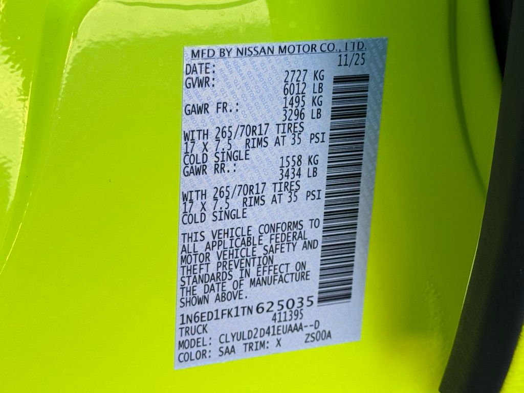 Tow Package, 4WD, 17" Painted Alloy Wheels, 3.692 Axle Ratio, 4-Wheel Disc Brakes, 6 Speakers, ABS brakes, Air Conditioning, Alloy wheels, AM/FM radio: SiriusXM, Anti-whiplash front head restraints, Auto High-beam Headlights, Automatic temperature control, Blind Spot Warning, Brake assist, Bumpers: body-color, Delay-off headlights, Driver door bin, Driver vanity mirror, Dual front impact airbags, Dual front side impact airbags, Electronic Stability Control, Emergency communication system, Essentials Kit, Front anti-roll bar, Front Bucket Seats, Front Center Armrest, Front dual zone A/C, Front fog lights, Front reading lights, Front wheel independent suspension, Fully automatic headlights, Heated Front Bucket Seats, Heated front seats, Heated steering wheel, Illuminated entry, Knee airbag, Leather steering wheel, Low tire pressure warning, Mud Flaps, Occupant sensing airbag, Off-Road Style Step Rails, Overhead airbag, Overhead console, Panic alarm, Passenger door bin, Passenger vanity mirror, Power door mirrors, Power driver seat, Power passenger seat, Power steering, Power windows, Premium Paint, PRO Embroidered Premium Cloth Seat Trim, Radio data system, Rear anti-roll bar, Rear seat center armrest, Rear side impact airbag, Rear step bumper, Remote keyless entry, Security system, Speed control, Speed-sensing steering, Split folding rear seat, Steering wheel mounted audio controls, Tachometer, Telescoping steering wheel, Tilt steering wheel, Traction control, Trip computer, Variably intermittent wipers, Voltmeter, and Wireless Apple CarPlay/Wireless Android Auto. Price includes all rebates: $3500 - Nissan Customer Cash. Exp. 05/04/2026