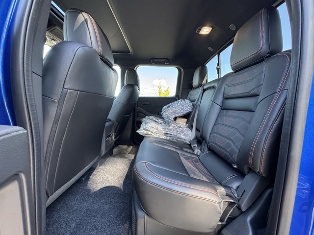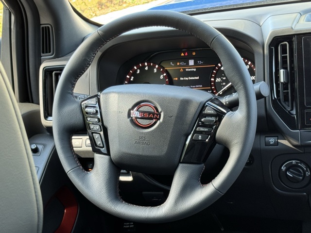 PRO Premium Package (Auto-Dimming Mirror, Auto-Tilt & Slide Sunroof w/Manual Shade, Fender Premium Audio System w/10 Speakers, HomeLink UGDO, Leather Seat Trim, Nissan Door-to-Door Navigation, Partial Under-Seat Storage Delete, and Traffic Sign Recognition (TSR)), PRO-4X Convenience Package (Heated Steering Wheel, Intelligent Around View Monitor (I-AVM), and Wireless Charging for Personal Devices), Tow Package (T11), 17" Painted Alloy Wheels, 3.692 Axle Ratio, 4-Wheel Disc Brakes, 6 Speakers, ABS brakes, Air Conditioning, Alloy wheels, AM/FM radio: SiriusXM, Anti-whiplash front head restraints, Auto High-beam Headlights, Automatic temperature control, Blind Spot Warning, Brake assist, Bumpers: body-color, Delay-off headlights, Driver door bin, Driver vanity mirror, Dual front impact airbags, Dual front side impact airbags, Electronic Stability Control, Electronic Tailgate Lock, Emergency communication system, Essentials Kit, Front anti-roll bar, Front Bucket Seats, Front Center Armrest, Front dual zone A/C, Front fog lights, Front reading lights, Front wheel independent suspension, Fully automatic headlights, Heated Front Bucket Seats, Heated front seats, Heated steering wheel, Illuminated entry, Knee airbag, Leather steering wheel, Low tire pressure warning, Mud Flaps, Occupant sensing airbag, Off-Road Style Step Rails, Overhead airbag, Overhead console, Panic alarm, Passenger door bin, Passenger vanity mirror, Power door mirrors, Power driver seat, Power passenger seat, Power steering, Power windows, Premium Paint, PRO Embroidered Premium Cloth Seat Trim, PRO-4X Carpeted Floor Mats, Radio data system, Radio: SXM/AM/FM/AUX/USB Audio System, Rear anti-roll bar, Rear seat center armrest, Rear side impact airbag, Rear step bumper, Remote keyless entry, Security system, Speed control, Speed-sensing steering, Split folding rear seat, Steering wheel mounted audio controls, Tachometer, Telescoping steering wheel, Tilt steering wheel, Traction control, Trip computer, Variably intermittent wipers, Voltmeter, and Wireless Apple CarPlay/Wireless Android Auto.