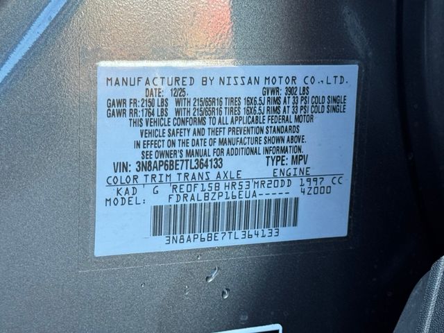 4 Speakers, 4-Wheel Disc Brakes, ABS brakes, Air Conditioning, AM/FM radio, Auto High-beam Headlights, Blind Spot Warning, Brake assist, Bumpers: body-color, Carpeted Floor Mats and Cargo Mat, Cloth Seat Trim, Driver door bin, Driver vanity mirror, Driver's Seat Mounted Armrest, Dual front impact airbags, Dual front side impact airbags, Electronic Stability Control, Emergency communication system, Exterior Parking Camera Rear, Front anti-roll bar, Front Bucket Seats, Front reading lights, Front wheel independent suspension, Fully automatic headlights, Illuminated entry, Knee airbag, Low tire pressure warning, NissanConnect featuring Apple CarPlay and Android Auto, Occupant sensing airbag, Outside temperature display, Overhead airbag, Panic alarm, Passenger door bin, Passenger vanity mirror, Power door mirrors, Power steering, Power windows, Radio data system, Radio: AM/FM/SiriusXM Audio System, Rear anti-roll bar, Rear reading lights, Rear side impact airbag, Rear window defroster, Rear window wiper, Remote keyless entry, Security system, Speed control, Speed-sensing steering, Splash Guards, Split folding rear seat, Spoiler, Sport steering wheel, Steering wheel mounted audio controls, Tachometer, Telescoping steering wheel, Tilt steering wheel, Traction control, Trip computer, Variably intermittent wipers, and Wheels: 16" Steel with Full Covers. Price includes dealer added accessories.