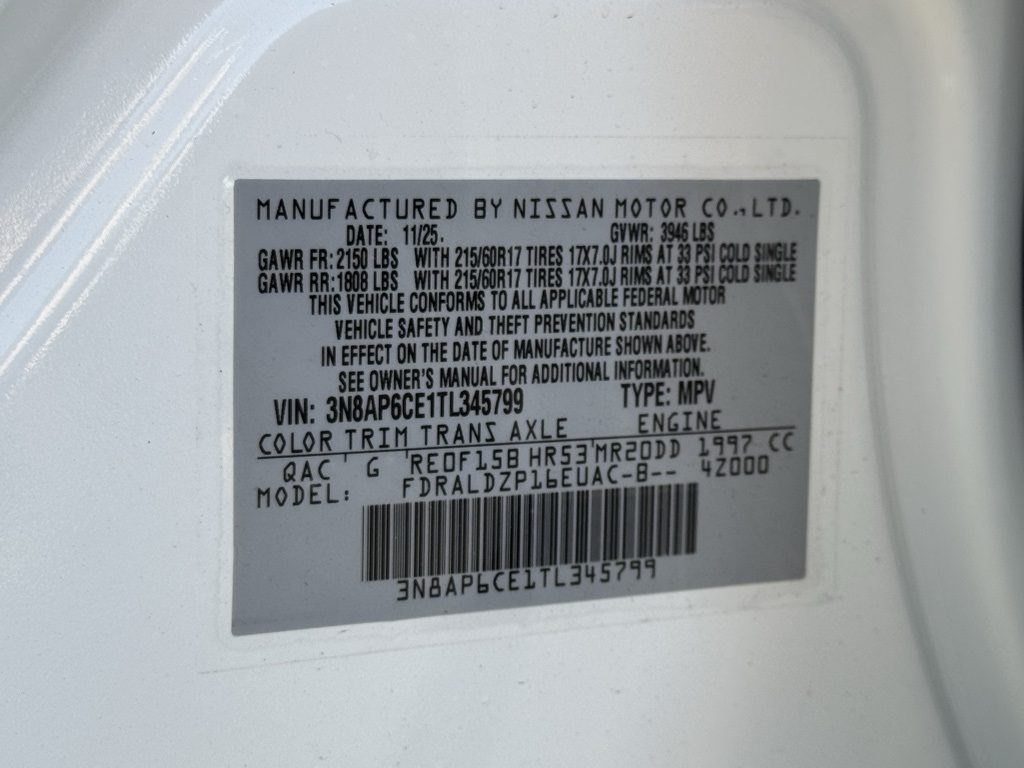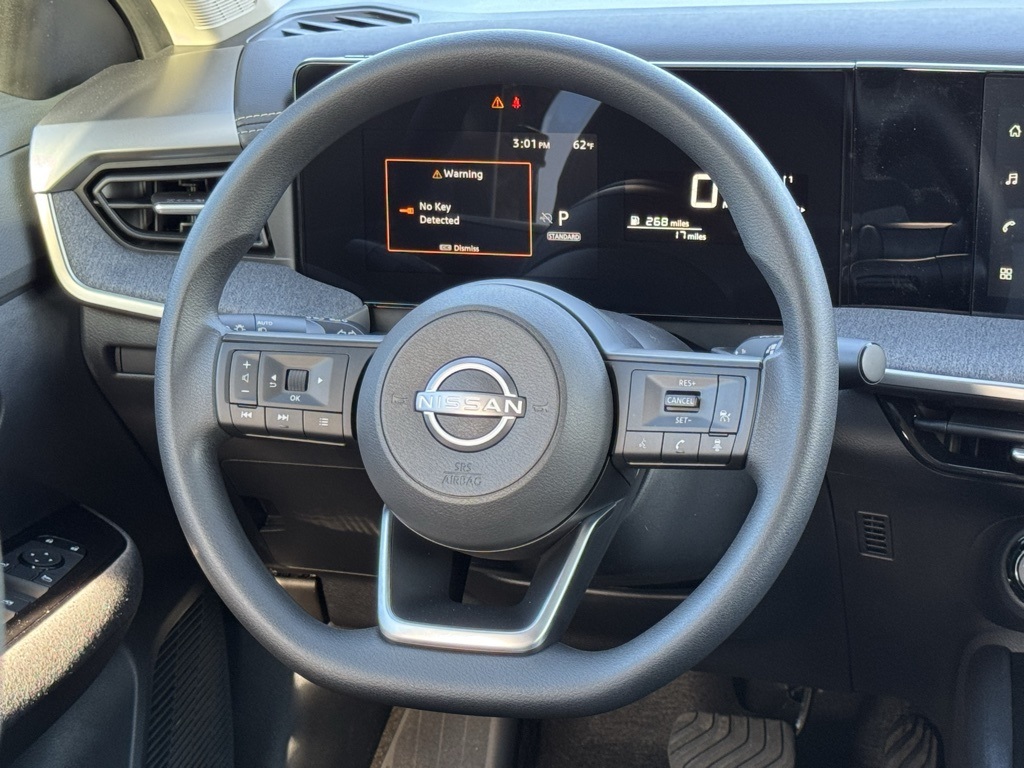 Cold Weather Package (Heated Front Seats, Heated Mirrors, and Rear Floor Heater Ducts), SV Premium Package (Illuminated Driver & Passenger Sun Visors, Panoramic Moonroof, and Sunglass Holder), 4 Speakers, 4-Wheel Disc Brakes, ABS brakes, Air Conditioning, AM/FM radio, Auto High-beam Headlights, Automatic temperature control, Blind Spot Warning, Brake assist, Bumpers: body-color, Carpeted Floor Mats & Underfloor Protector, Cloth Seat Trim, Crossbars, Driver door bin, Driver vanity mirror, Dual front impact airbags, Dual front side impact airbags, Electronic Stability Control, Emergency communication system, Exterior Parking Camera Rear, Front anti-roll bar, Front Bucket Seats, Front Center Armrest, Front reading lights, Front wheel independent suspension, Fully automatic headlights, Illuminated entry, Knee airbag, Low tire pressure warning, NissanConnect featuring Apple CarPlay and Android Auto, Occupant sensing airbag, Outside temperature display, Overhead airbag, Panic alarm, Panoramic Headliner Illumination, Passenger door bin, Passenger vanity mirror, Power door mirrors, Power steering, Power windows, Premium Paint, Radio data system, Radio: AM/FM/SiriusXM Audio System, Rear anti-roll bar, Rear reading lights, Rear side impact airbag, Rear window defroster, Rear window wiper, Remote keyless entry, Security system, Speed control, Speed-sensing steering, Splash Guards, Split folding rear seat, Spoiler, Sport steering wheel, Steering wheel mounted audio controls, Tachometer, Telescoping steering wheel, Tilt steering wheel, Traction control, Trip computer, Variably intermittent wipers, and Wheels: 17" Steel Flex w/Full Covers. Price includes all rebates: $1000 - Nissan Customer Cash. Exp. 03/02/2026