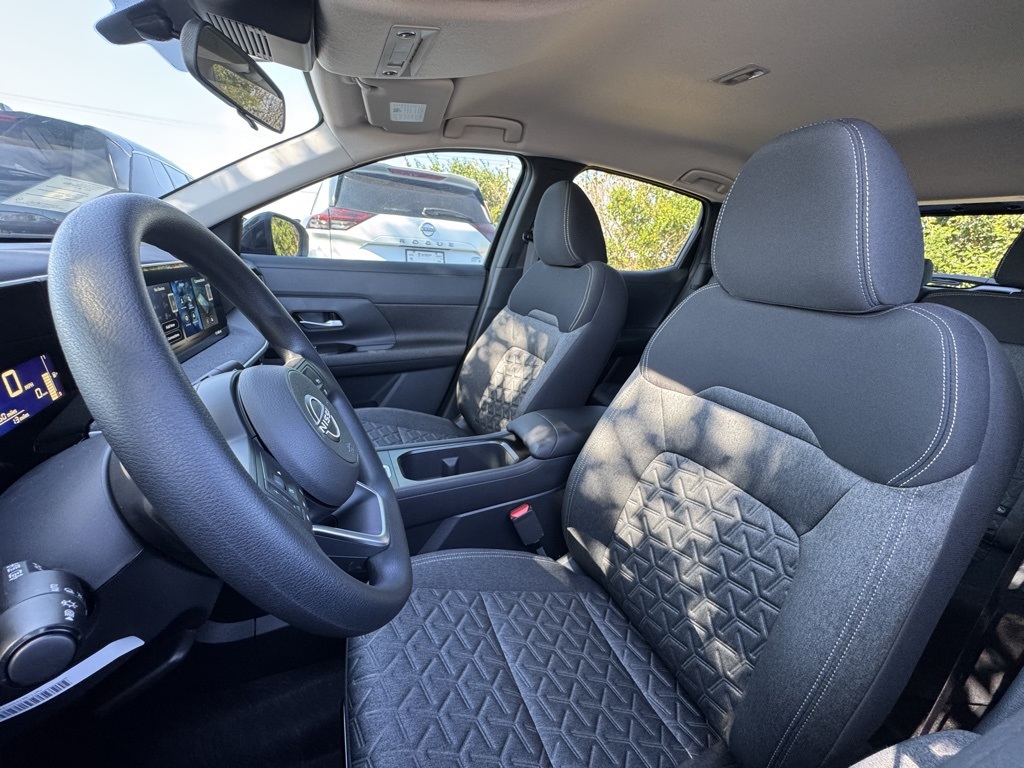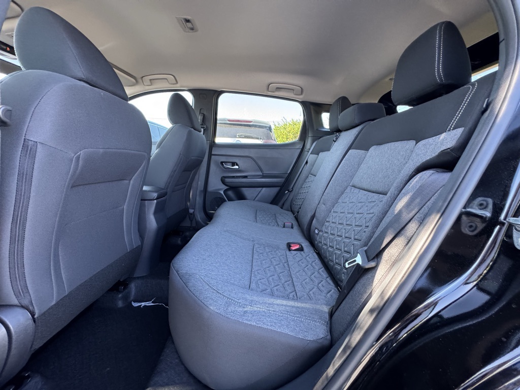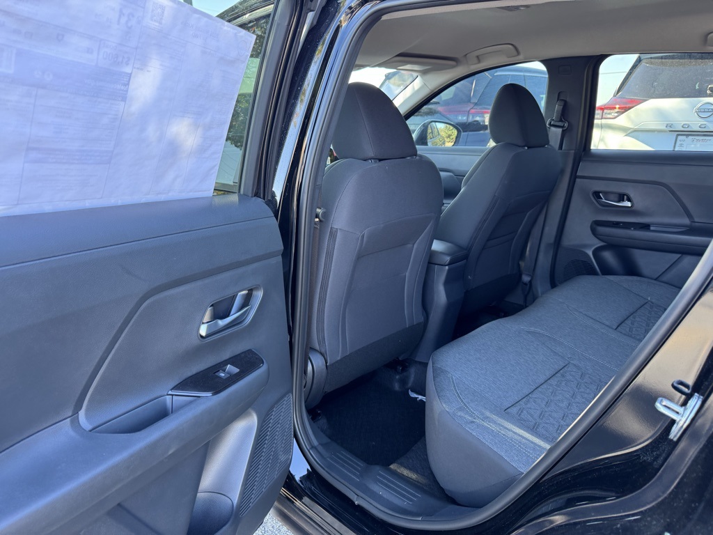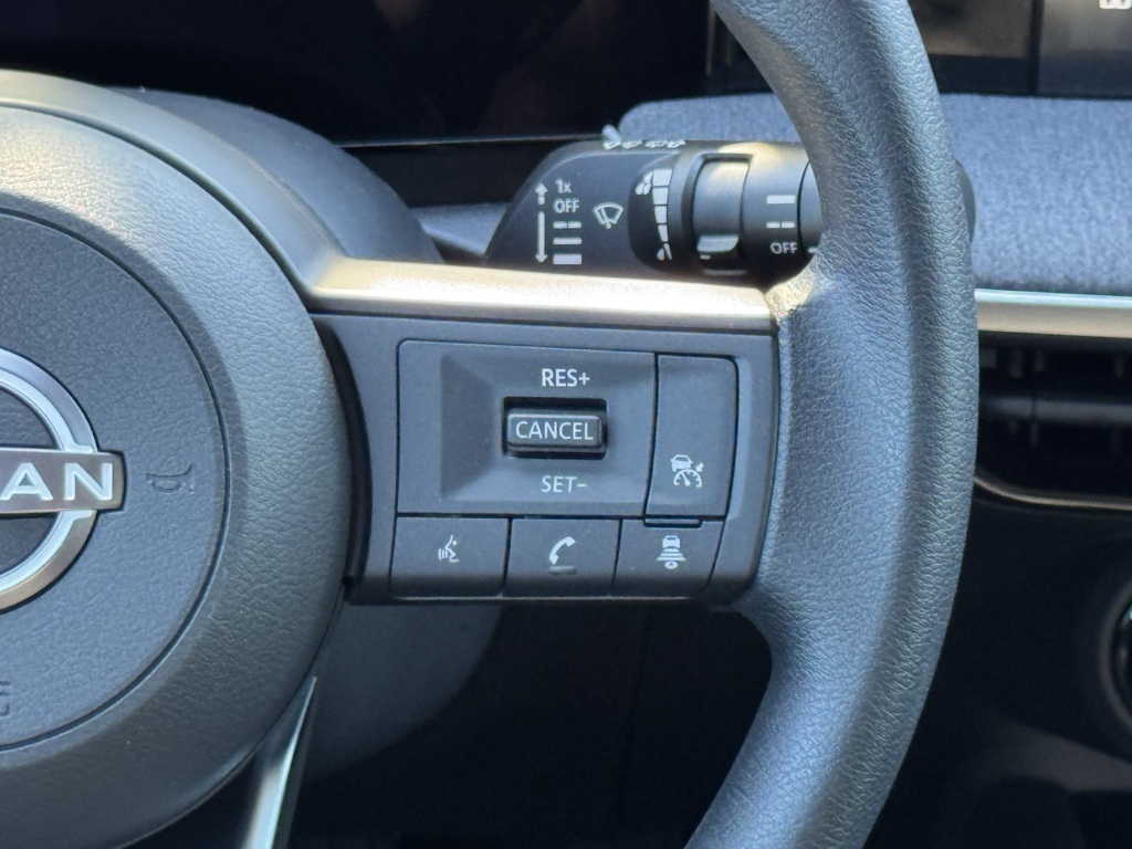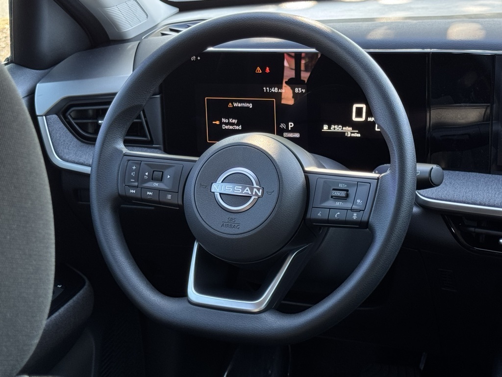 4 Speakers, 4-Wheel Disc Brakes, ABS brakes, Air Conditioning, AM/FM radio, Auto High-beam Headlights, Automatic temperature control, Blind Spot Warning, Brake assist, Bumpers: body-color, Carpeted Floor Mats & Underfloor Protector, Cloth Seat Trim, Driver door bin, Driver vanity mirror, Dual front impact airbags, Dual front side impact airbags, Electronic Stability Control, Emergency communication system, Exterior Parking Camera Rear, Front anti-roll bar, Front Bucket Seats, Front Center Armrest, Front reading lights, Front wheel independent suspension, Fully automatic headlights, Illuminated entry, Knee airbag, Low tire pressure warning, NissanConnect featuring Apple CarPlay and Android Auto, Occupant sensing airbag, Outside temperature display, Overhead airbag, Panic alarm, Passenger door bin, Passenger vanity mirror, Power door mirrors, Power steering, Power windows, Radio data system, Radio: AM/FM/SiriusXM Audio System, Rear anti-roll bar, Rear reading lights, Rear side impact airbag, Rear window defroster, Rear window wiper, Remote keyless entry, Security system, Speed control, Speed-sensing steering, Splash Guards, Split folding rear seat, Spoiler, Sport steering wheel, Steering wheel mounted audio controls, Tachometer, Telescoping steering wheel, Tilt steering wheel, Traction control, Trip computer, Variably intermittent wipers, and Wheels: 17" Steel Flex w/Full Covers.