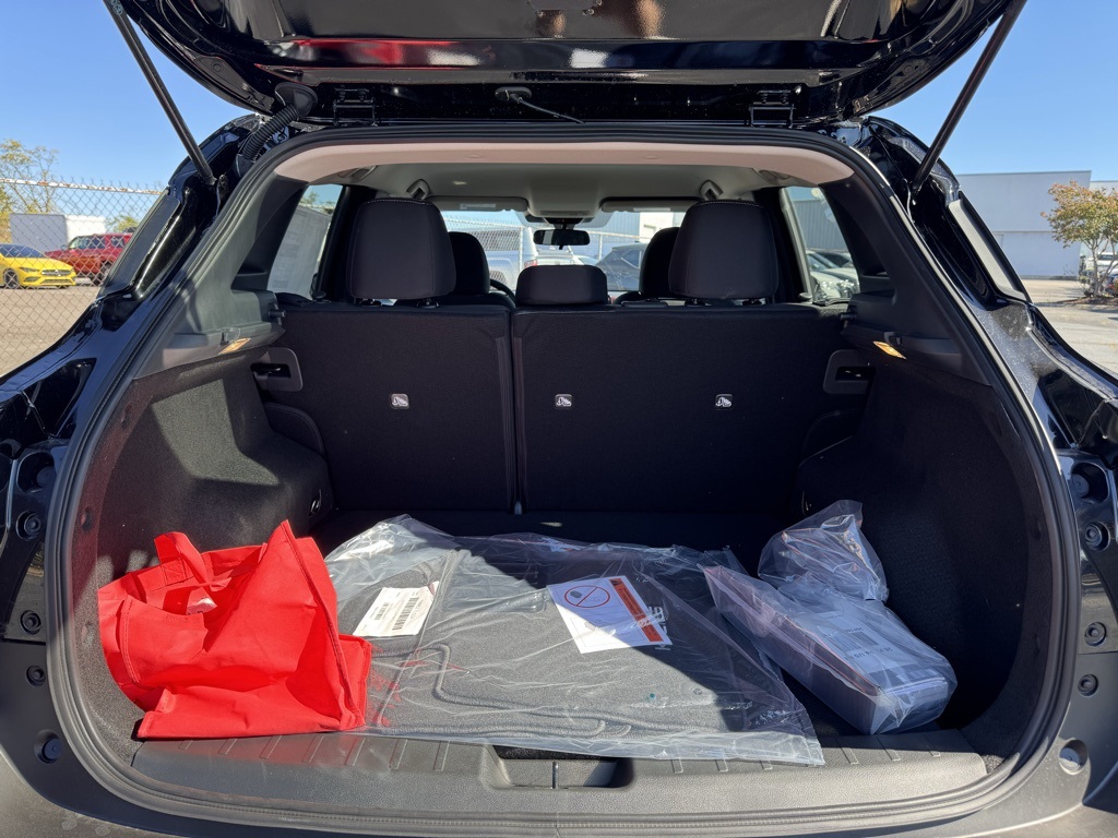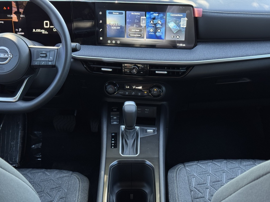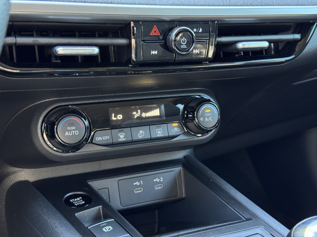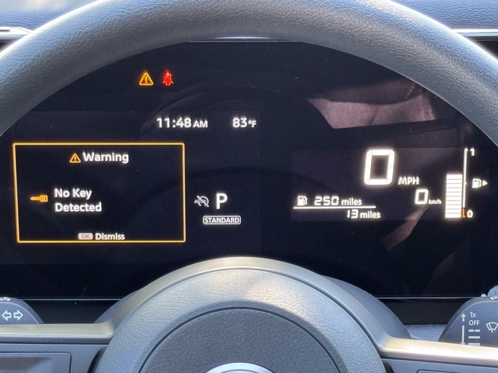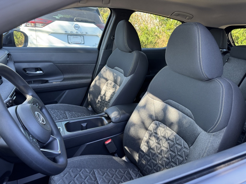 4 Speakers, 4-Wheel Disc Brakes, ABS brakes, Air Conditioning, AM/FM radio, Auto High-beam Headlights, Automatic temperature control, Blind Spot Warning, Brake assist, Bumpers: body-color, Carpeted Floor Mats & Underfloor Protector, Cloth Seat Trim, Driver door bin, Driver vanity mirror, Dual front impact airbags, Dual front side impact airbags, Electronic Stability Control, Emergency communication system, Exterior Parking Camera Rear, Front anti-roll bar, Front Bucket Seats, Front Center Armrest, Front reading lights, Front wheel independent suspension, Fully automatic headlights, Illuminated entry, Knee airbag, Low tire pressure warning, NissanConnect featuring Apple CarPlay and Android Auto, Occupant sensing airbag, Outside temperature display, Overhead airbag, Panic alarm, Passenger door bin, Passenger vanity mirror, Power door mirrors, Power steering, Power windows, Radio data system, Radio: AM/FM/SiriusXM Audio System, Rear anti-roll bar, Rear reading lights, Rear side impact airbag, Rear window defroster, Rear window wiper, Remote keyless entry, Security system, Speed control, Speed-sensing steering, Splash Guards, Split folding rear seat, Spoiler, Sport steering wheel, Steering wheel mounted audio controls, Tachometer, Telescoping steering wheel, Tilt steering wheel, Traction control, Trip computer, Variably intermittent wipers, and Wheels: 17" Steel Flex w/Full Covers.