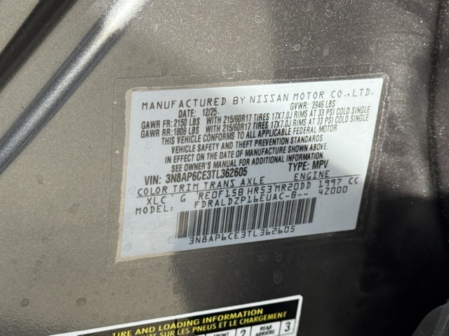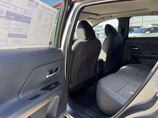 Cold Weather Package (Heated Front Seats, Heated Mirrors, and Rear Floor Heater Ducts), SV Premium Package (Illuminated Driver & Passenger Sun Visors, Panoramic Moonroof, and Sunglass Holder), 2-Tone Paint, 4 Speakers, 4-Wheel Disc Brakes, ABS brakes, Air Conditioning, AM/FM radio, Auto High-beam Headlights, Automatic temperature control, Blind Spot Warning, Brake assist, Bumpers: body-color, Carpeted Floor Mats & Underfloor Protector, Cloth Seat Trim, Crossbars, Driver door bin, Driver vanity mirror, Dual front impact airbags, Dual front side impact airbags, Electronic Stability Control, Emergency communication system, Exterior Parking Camera Rear, Front anti-roll bar, Front Bucket Seats, Front Center Armrest, Front reading lights, Front wheel independent suspension, Fully automatic headlights, Illuminated entry, Knee airbag, Low tire pressure warning, NissanConnect featuring Apple CarPlay and Android Auto, Occupant sensing airbag, Outside temperature display, Overhead airbag, Panic alarm, Passenger door bin, Passenger vanity mirror, Power door mirrors, Power steering, Power windows, Radio data system, Radio: AM/FM/SiriusXM Audio System, Rear anti-roll bar, Rear reading lights, Rear side impact airbag, Rear window defroster, Rear window wiper, Remote keyless entry, Security system, Speed control, Speed-sensing steering, Splash Guards, Split folding rear seat, Spoiler, Sport steering wheel, Steering wheel mounted audio controls, Tachometer, Telescoping steering wheel, Tilt steering wheel, Traction control, Trip computer, Variably intermittent wipers, and Wheels: 17" Steel Flex w/Full Covers. Price includes: $1000 - Nissan Customer Cash. Exp. 03/02/2026 Price includes dealer added accessories.