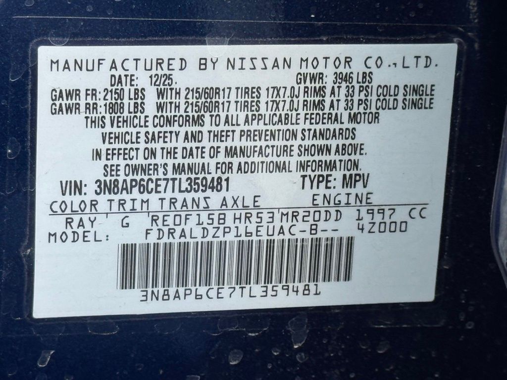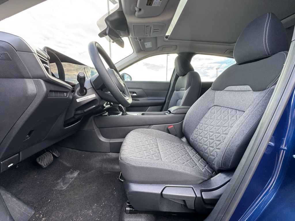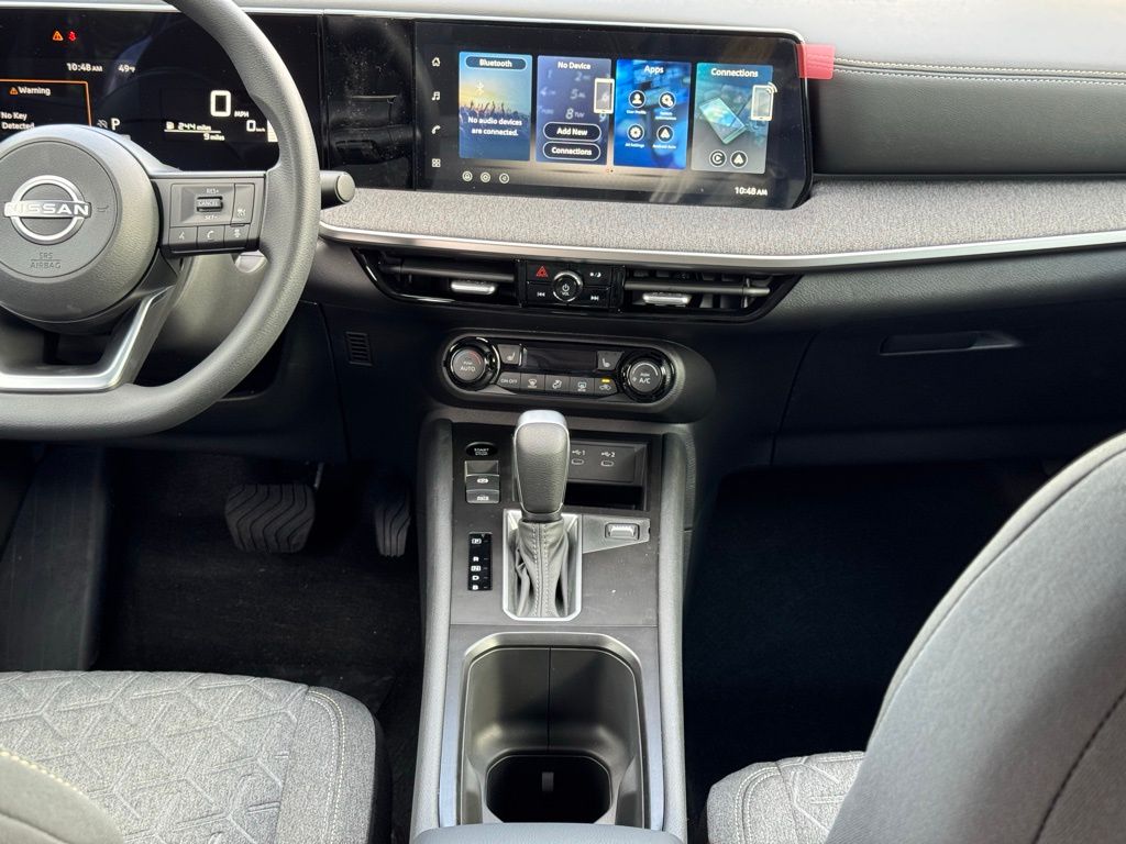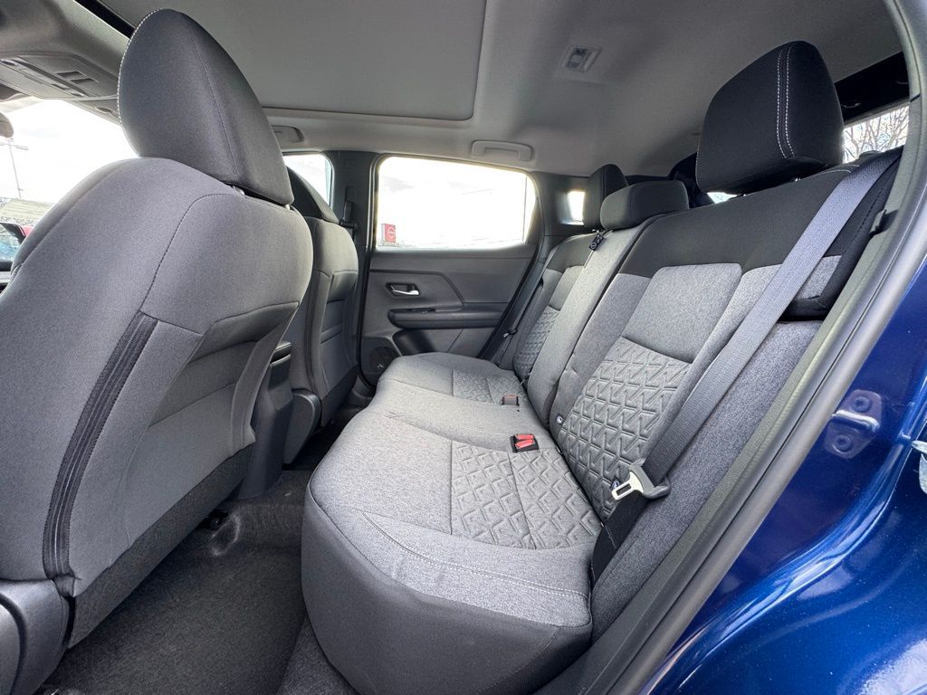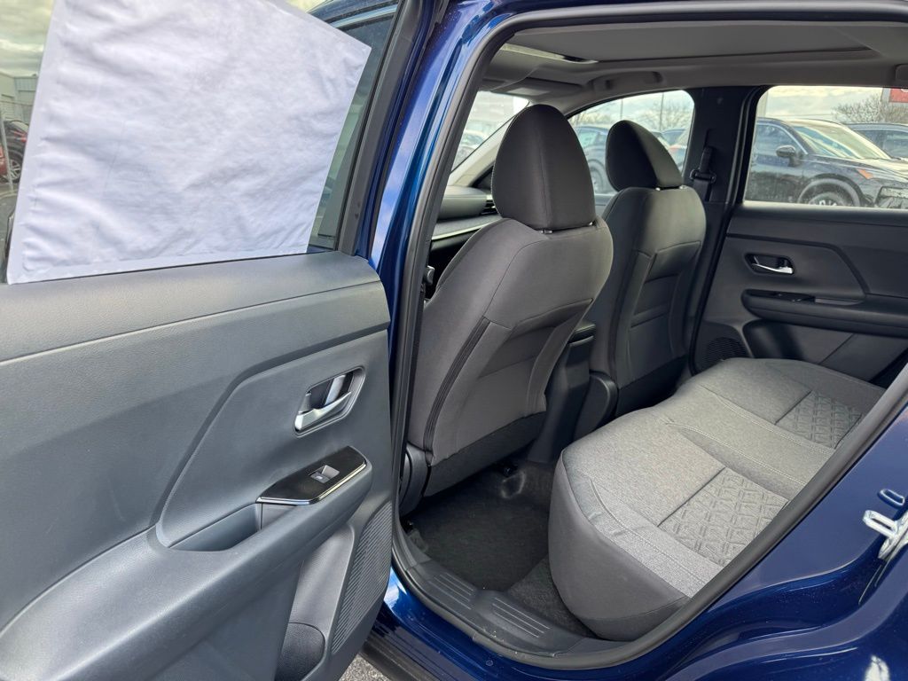 Cold Weather Package (Heated Front Seats, Heated Mirrors, and Rear Floor Heater Ducts), SV Premium Package (Panoramic Moonroof and Sunglass Holder), 4 Speakers, 4-Wheel Disc Brakes, ABS brakes, Air Conditioning, AM/FM radio, Auto High-beam Headlights, Automatic temperature control, Blind Spot Warning, Brake assist, Bumpers: body-color, Cloth Seat Trim, Driver door bin, Driver vanity mirror, Dual front impact airbags, Dual front side impact airbags, Electronic Stability Control, Emergency communication system, Exterior Parking Camera Rear, Front anti-roll bar, Front Bucket Seats, Front Center Armrest, Front reading lights, Front wheel independent suspension, Fully automatic headlights, Illuminated entry, Knee airbag, Low tire pressure warning, NissanConnect featuring Apple CarPlay and Android Auto, Occupant sensing airbag, Outside temperature display, Overhead airbag, Panic alarm, Passenger door bin, Passenger vanity mirror, Power door mirrors, Power steering, Power windows, Radio data system, Radio: AM/FM/SiriusXM Audio System, Rear anti-roll bar, Rear reading lights, Rear side impact airbag, Rear window defroster, Rear window wiper, Remote keyless entry, Security system, Speed control, Speed-sensing steering, Splash Guards, Split folding rear seat, Spoiler, Sport steering wheel, Steering wheel mounted audio controls, Tachometer, Telescoping steering wheel, Tilt steering wheel, Traction control, Trip computer, and Variably intermittent wipers. Price includes all rebates: $1000 - Nissan Customer Cash. Exp. 05/04/2026