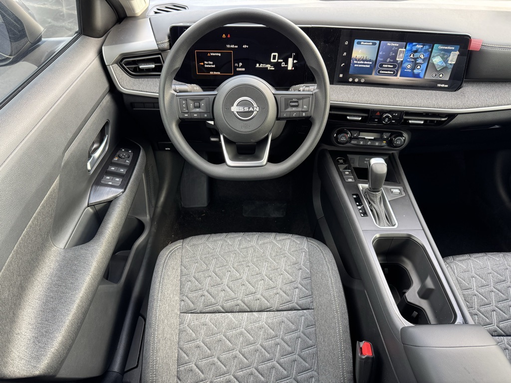 Cold Weather Package (Heated Front Seats, Heated Mirrors, and Rear Floor Heater Ducts), SV Premium Package (Illuminated Driver & Passenger Sun Visors, Panoramic Moonroof, and Sunglass Holder), 4 Speakers, 4-Wheel Disc Brakes, ABS brakes, Air Conditioning, AM/FM radio, Auto High-beam Headlights, Automatic temperature control, Blind Spot Warning, Brake assist, Bumpers: body-color, Carpeted Floor Mats & Underfloor Protector, Cloth Seat Trim, Driver door bin, Driver vanity mirror, Dual front impact airbags, Dual front side impact airbags, Electronic Stability Control, Emergency communication system, Exterior Parking Camera Rear, Front anti-roll bar, Front Bucket Seats, Front Center Armrest, Front reading lights, Front wheel independent suspension, Fully automatic headlights, Illuminated entry, Knee airbag, Low tire pressure warning, NissanConnect featuring Apple CarPlay and Android Auto, Occupant sensing airbag, Outside temperature display, Overhead airbag, Panic alarm, Passenger door bin, Passenger vanity mirror, Power door mirrors, Power steering, Power windows, Radio data system, Radio: AM/FM/SiriusXM Audio System, Rear anti-roll bar, Rear reading lights, Rear side impact airbag, Rear window defroster, Rear window wiper, Remote keyless entry, Security system, Speed control, Speed-sensing steering, Splash Guards, Split folding rear seat, Spoiler, Sport steering wheel, Steering wheel mounted audio controls, Tachometer, Telescoping steering wheel, Tilt steering wheel, Traction control, Trip computer, Variably intermittent wipers, and Wheels: 17" Steel Flex w/Full Covers. Price includes all rebates: $1000 - Nissan Customer Cash. Exp. 03/02/2026