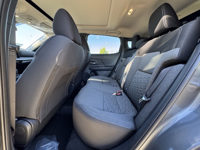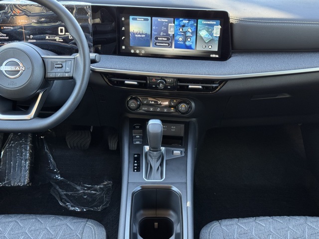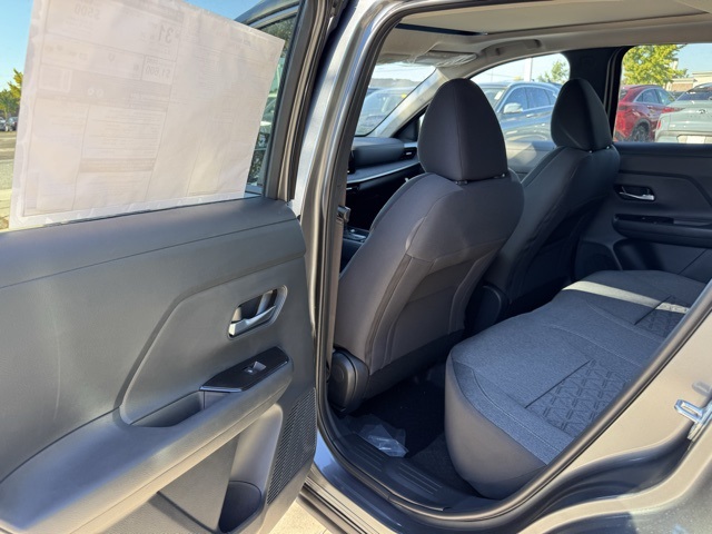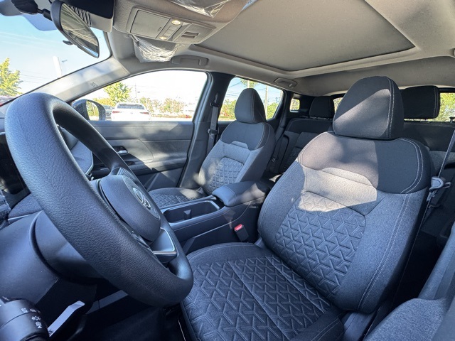 Cold Weather Package (Heated Front Seats, Heated Mirrors, and Rear Floor Heater Ducts), SV Premium Package (Illuminated Driver & Passenger Sun Visors, Panoramic Moonroof, and Sunglass Holder), 4 Speakers, 4-Wheel Disc Brakes, ABS brakes, Air Conditioning, AM/FM radio, Auto High-beam Headlights, Automatic temperature control, Blind Spot Warning, Brake assist, Bumpers: body-color, Carpeted Floor Mats & Underfloor Protector, Cloth Seat Trim, Crossbars, Driver door bin, Driver vanity mirror, Dual front impact airbags, Dual front side impact airbags, Electronic Stability Control, Emergency communication system, Exterior Parking Camera Rear, Front anti-roll bar, Front Bucket Seats, Front Center Armrest, Front reading lights, Front wheel independent suspension, Fully automatic headlights, Illuminated entry, Knee airbag, Low tire pressure warning, NissanConnect featuring Apple CarPlay and Android Auto, Occupant sensing airbag, Outside temperature display, Overhead airbag, Panic alarm, Passenger door bin, Passenger vanity mirror, Power door mirrors, Power steering, Power windows, Radio data system, Radio: AM/FM/SiriusXM Audio System, Rear anti-roll bar, Rear reading lights, Rear side impact airbag, Rear window defroster, Rear window wiper, Remote keyless entry, Security system, Speed control, Speed-sensing steering, Splash Guards, Split folding rear seat, Spoiler, Sport steering wheel, Steering wheel mounted audio controls, Tachometer, Telescoping steering wheel, Tilt steering wheel, Traction control, Trip computer, Variably intermittent wipers, and Wheels: 17" Steel Flex w/Full Covers.