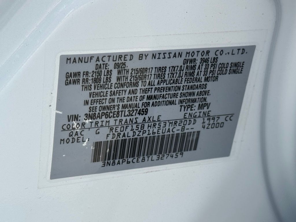 Cold Weather Package (Heated Front Seats, Heated Mirrors, and Rear Floor Heater Ducts), Illumination Package (Illuminated Cargo Scuff Plate and Illuminated Kickplates), SV Premium Package (Panoramic Moonroof and Sunglass Holder), 4 Speakers, 4-Wheel Disc Brakes, ABS brakes, Air Conditioning, AM/FM radio, Auto High-beam Headlights, Automatic temperature control, Blind Spot Warning, Brake assist, Bumpers: body-color, Cloth Seat Trim, Crossbars, Door Trim Panel Scuff Plates, Driver door bin, Driver vanity mirror, Dual front impact airbags, Dual front side impact airbags, Electronic Stability Control, Emergency communication system, Exterior Parking Camera Rear, Front anti-roll bar, Front Bucket Seats, Front Center Armrest, Front reading lights, Front wheel independent suspension, Fully automatic headlights, Illuminated entry, Knee airbag, Low tire pressure warning, NissanConnect featuring Apple CarPlay and Android Auto, Occupant sensing airbag, Outside temperature display, Overhead airbag, Panic alarm, Panoramic Headliner Illumination, Passenger door bin, Passenger vanity mirror, Power door mirrors, Power steering, Power windows, Premium Paint, Radio data system, Radio: AM/FM/SiriusXM Audio System, Rear anti-roll bar, Rear reading lights, Rear side impact airbag, Rear window defroster, Rear window wiper, Remote keyless entry, Security system, Speed control, Speed-sensing steering, Splash Guards, Split folding rear seat, Spoiler, Sport steering wheel, Steering wheel mounted audio controls, Tachometer, Telescoping steering wheel, Tilt steering wheel, Traction control, Trip computer, and Variably intermittent wipers. Price includes all rebates: $1000 - Nissan Customer Cash. Exp. 05/04/2026