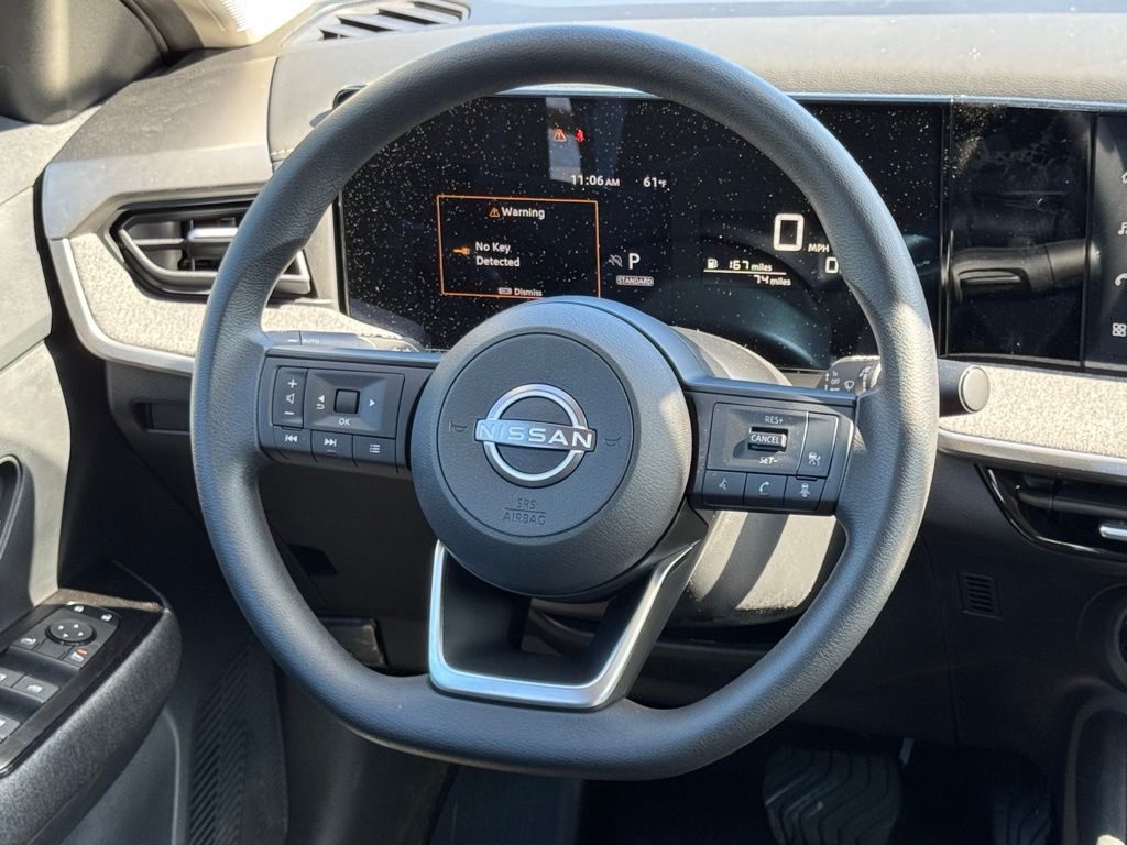 Charging Package (USB Charging Cable Set - Nissan and USB-C Power Delivery), Cold Weather Package (Heated Front Seats, Heated Mirrors, and Rear Floor Heater Ducts), 4 Speakers, 4-Wheel Disc Brakes, ABS brakes, Air Conditioning, AM/FM radio, Auto High-beam Headlights, Automatic temperature control, Blind Spot Warning, Brake assist, Bumpers: body-color, Carpeted Floor Mats and Underfloor Protector, Cloth Seat Trim, Crossbars, Driver door bin, Driver vanity mirror, Dual front impact airbags, Dual front side impact airbags, Electronic Stability Control, Emergency communication system, Exterior Parking Camera Rear, Front anti-roll bar, Front Bucket Seats, Front Center Armrest, Front reading lights, Front wheel independent suspension, Fully automatic headlights, Illuminated entry, Knee airbag, Low tire pressure warning, NissanConnect featuring Apple CarPlay and Android Auto, Occupant sensing airbag, Outside temperature display, Overhead airbag, Panic alarm, Passenger door bin, Passenger vanity mirror, Power door mirrors, Power steering, Power windows, Radio data system, Radio: AM/FM/SiriusXM Audio System, Rear anti-roll bar, Rear reading lights, Rear side impact airbag, Rear window defroster, Rear window wiper, Remote keyless entry, Security system, Speed control, Speed-sensing steering, Splash Guards, Split folding rear seat, Spoiler, Sport steering wheel, Steering wheel mounted audio controls, Tachometer, Telescoping steering wheel, Tilt steering wheel, Traction control, Trip computer, Variably intermittent wipers, and Wheels: 17" Steel Flex with Full Covers. Price includes all rebates: $1000 - Nissan Customer Cash. Exp. 05/04/2026