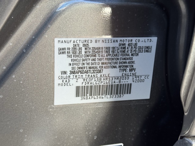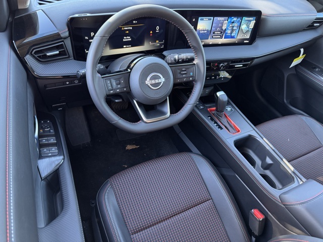 17" Alloy Wheels, 19" Alloy Wheels, 4-Wheel Disc Brakes, 6 Speakers, ABS brakes, Air Conditioning, Alloy wheels, AM/FM radio, Auto High-beam Headlights, Automatic temperature control, Brake assist, Bumpers: body-color, Carpeted Floor Mats & Underfloor Protector, Delay-off headlights, Driver door bin, Driver vanity mirror, Dual front impact airbags, Dual front side impact airbags, Electronic Stability Control, Emergency communication system: NissanConnect Services, Exterior Parking Camera Rear, Front anti-roll bar, Front Bucket Seats, Front Center Armrest, Front reading lights, Front wheel independent suspension, Fully automatic headlights, Garage door transmitter: myQ Connected Garage, Illuminated entry, Knee airbag, Leather Shift Knob, Leather steering wheel, Low tire pressure warning, NissanConnect featuring Apple CarPlay and Android Auto, Occupant sensing airbag, Outside temperature display, Overhead airbag, Overhead console, Panic alarm, Passenger door bin, Passenger vanity mirror, Power door mirrors, Power steering, Power windows, Radio data system, Radio: AM/FM/SiriusXM Audio System, Rear anti-roll bar, Rear reading lights, Rear seat center armrest, Rear side impact airbag, Rear window defroster, Rear window wiper, Remote keyless entry, Security system, Speed control, Speed-sensing steering, Splash Guards, Split folding rear seat, Spoiler, Sport Leatherette w/Cloth Insert Seat Trim, Sport steering wheel, Steering wheel mounted audio controls, Tachometer, Telescoping steering wheel, Tilt steering wheel, Traction control, Trip computer, Turn signal indicator mirrors, and Variably intermittent wipers.