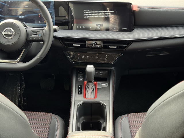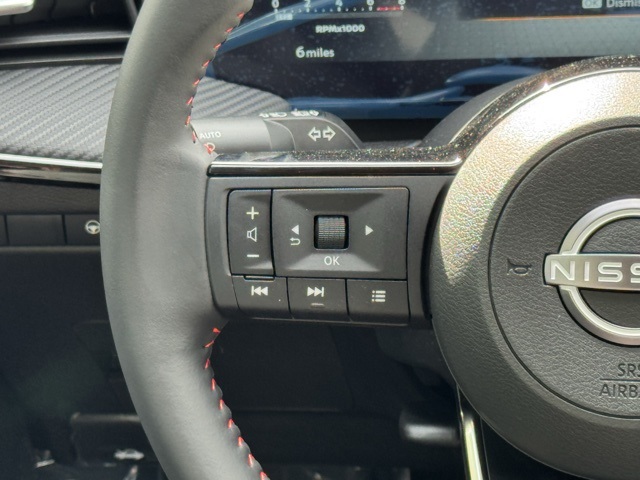 17" Alloy Wheels, 19" Alloy Wheels, 4-Wheel Disc Brakes, 6 Speakers, ABS brakes, Air Conditioning, Alloy wheels, AM/FM radio, Auto High-beam Headlights, Automatic temperature control, Brake assist, Bumpers: body-color, Carpeted Floor Mats & Underfloor Protector, Delay-off headlights, Driver door bin, Driver vanity mirror, Dual front impact airbags, Dual front side impact airbags, Electronic Stability Control, Emergency communication system: NissanConnect Services, Exterior Parking Camera Rear, Front anti-roll bar, Front Bucket Seats, Front Center Armrest, Front reading lights, Front wheel independent suspension, Fully automatic headlights, Garage door transmitter: myQ Connected Garage, Illuminated entry, Knee airbag, Leather Shift Knob, Leather steering wheel, Low tire pressure warning, NissanConnect featuring Apple CarPlay and Android Auto, Occupant sensing airbag, Outside temperature display, Overhead airbag, Overhead console, Panic alarm, Passenger door bin, Passenger vanity mirror, Power door mirrors, Power steering, Power windows, Premium Paint, Radio data system, Radio: AM/FM/SiriusXM Audio System, Rear anti-roll bar, Rear reading lights, Rear seat center armrest, Rear side impact airbag, Rear window defroster, Rear window wiper, Remote keyless entry, Security system, Speed control, Speed-sensing steering, Splash Guards, Split folding rear seat, Spoiler, Sport Leatherette w/Cloth Insert Seat Trim, Sport steering wheel, Steering wheel mounted audio controls, Tachometer, Telescoping steering wheel, Tilt steering wheel, Traction control, Trip computer, Turn signal indicator mirrors, and Variably intermittent wipers.