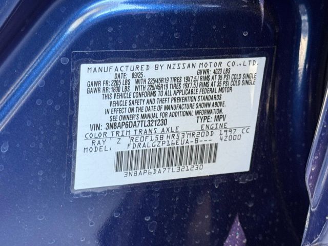 17" Alloy Wheels, 19" Alloy Wheels, 4-Wheel Disc Brakes, 6 Speakers, ABS brakes, Air Conditioning, Alloy wheels, AM/FM radio, Auto High-beam Headlights, Automatic temperature control, Brake assist, Bumpers: body-color, Carpeted Floor Mats and Underfloor Protector, Crossbars, Delay-off headlights, Driver door bin, Driver vanity mirror, Dual front impact airbags, Dual front side impact airbags, Electronic Stability Control, Emergency communication system: NissanConnect Services, Exterior Parking Camera Rear, Front anti-roll bar, Front Bucket Seats, Front Center Armrest, Front reading lights, Front wheel independent suspension, Fully automatic headlights, Garage door transmitter: myQ Connected Garage, Illuminated entry, Knee airbag, Leather Shift Knob, Leather steering wheel, Low tire pressure warning, NissanConnect featuring Apple CarPlay and Android Auto, Occupant sensing airbag, Outside temperature display, Overhead airbag, Overhead console, Panic alarm, Passenger door bin, Passenger vanity mirror, Power door mirrors, Power steering, Power windows, Radio data system, Radio: AM/FM/SiriusXM Audio System, Rear anti-roll bar, Rear reading lights, Rear seat center armrest, Rear side impact airbag, Rear window defroster, Rear window wiper, Remote keyless entry, Security system, Speed control, Speed-sensing steering, Splash Guards, Split folding rear seat, Spoiler, Sport Leatherette with Cloth Insert Seat Trim, Sport steering wheel, Steering wheel mounted audio controls, Tachometer, Telescoping steering wheel, Tilt steering wheel, Traction control, Trip computer, Turn signal indicator mirrors, and Variably intermittent wipers. Price includes: $1500 - Nissan Customer Cash. Exp. 05/04/2026 Price includes dealer added accessories.