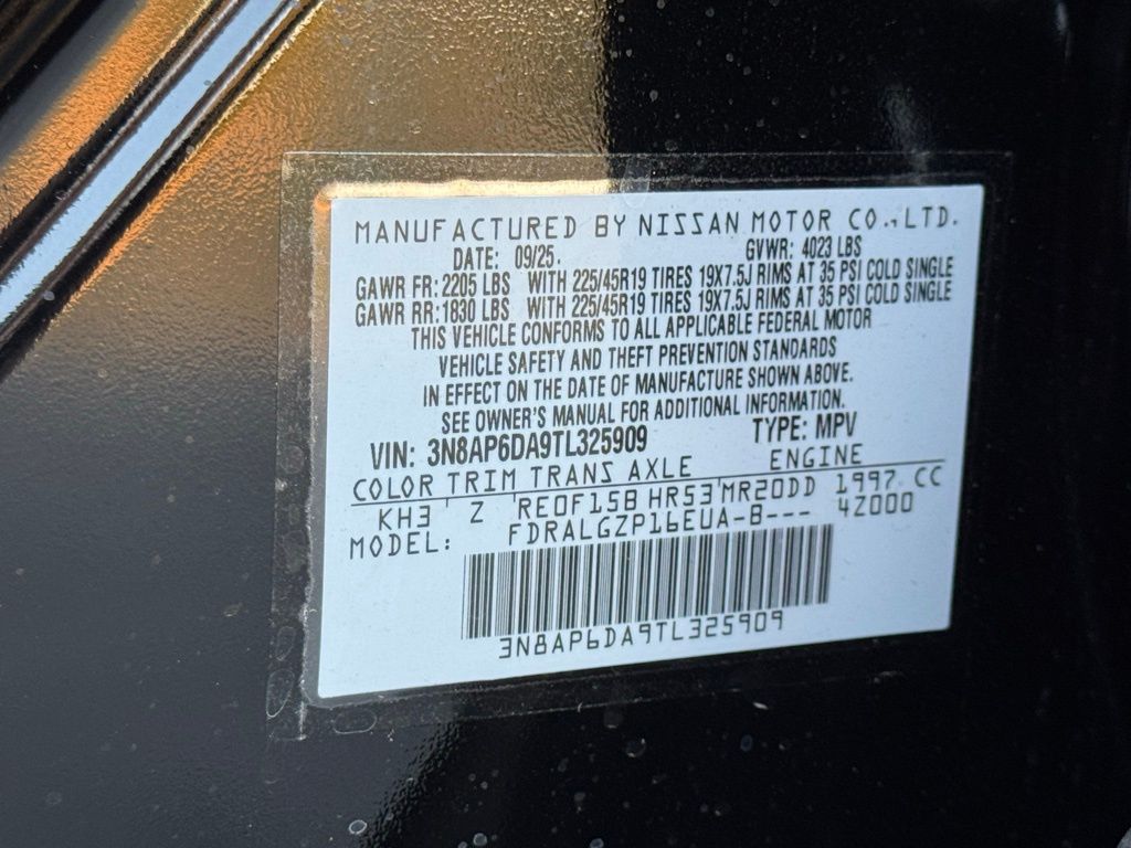 17" Alloy Wheels, 19" Alloy Wheels, 4-Wheel Disc Brakes, 6 Speakers, ABS brakes, Air Conditioning, Alloy wheels, AM/FM radio, Auto High-beam Headlights, Automatic temperature control, Brake assist, Bumpers: body-color, Delay-off headlights, Driver door bin, Driver vanity mirror, Dual front impact airbags, Dual front side impact airbags, Electronic Stability Control, Emergency communication system: NissanConnect Services, Exterior Parking Camera Rear, Front anti-roll bar, Front Bucket Seats, Front Center Armrest, Front reading lights, Front wheel independent suspension, Fully automatic headlights, Garage door transmitter: myQ Connected Garage, Illuminated entry, Knee airbag, Leather Shift Knob, Leather steering wheel, Low tire pressure warning, NissanConnect featuring Apple CarPlay and Android Auto, Occupant sensing airbag, Outside temperature display, Overhead airbag, Overhead console, Panic alarm, Passenger door bin, Passenger vanity mirror, Power door mirrors, Power steering, Power windows, Radio data system, Radio: AM/FM/SiriusXM Audio System, Rear anti-roll bar, Rear reading lights, Rear seat center armrest, Rear side impact airbag, Rear window defroster, Rear window wiper, Remote keyless entry, Security system, Speed control, Speed-sensing steering, Splash Guards, Split folding rear seat, Spoiler, Sport steering wheel, Steering wheel mounted audio controls, Tachometer, Telescoping steering wheel, Tilt steering wheel, Traction control, Trip computer, Turn signal indicator mirrors, and Variably intermittent wipers. Price includes all rebates: $1500 - Nissan Customer Cash. Exp. 05/04/2026