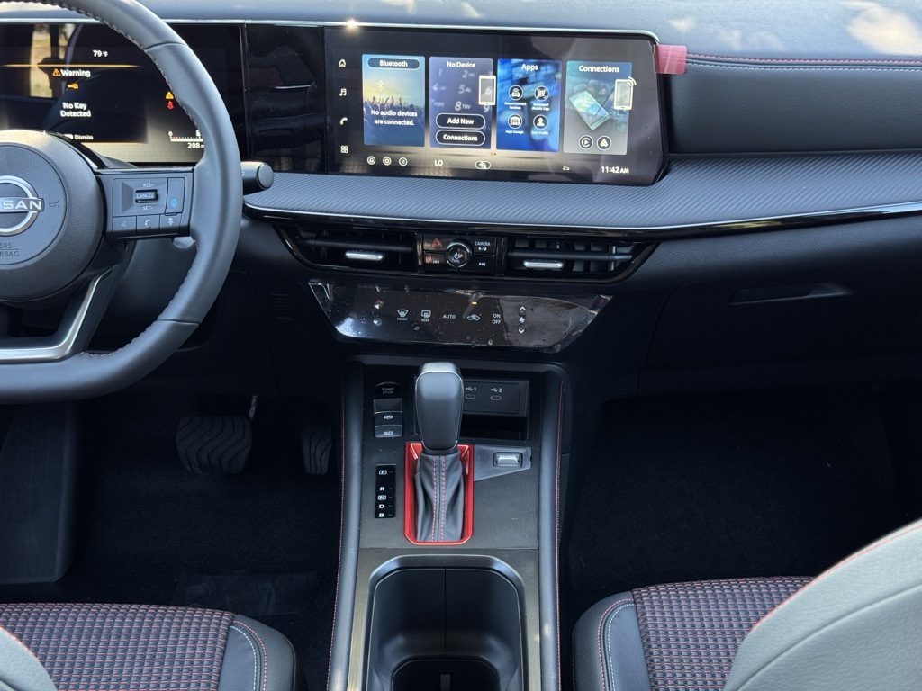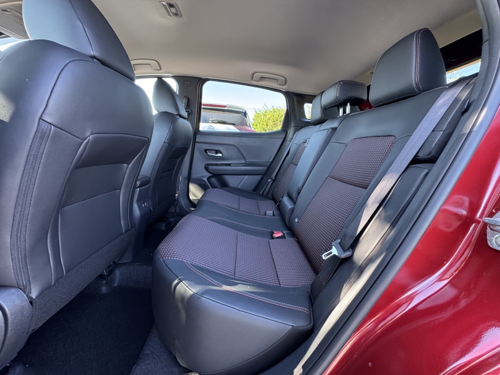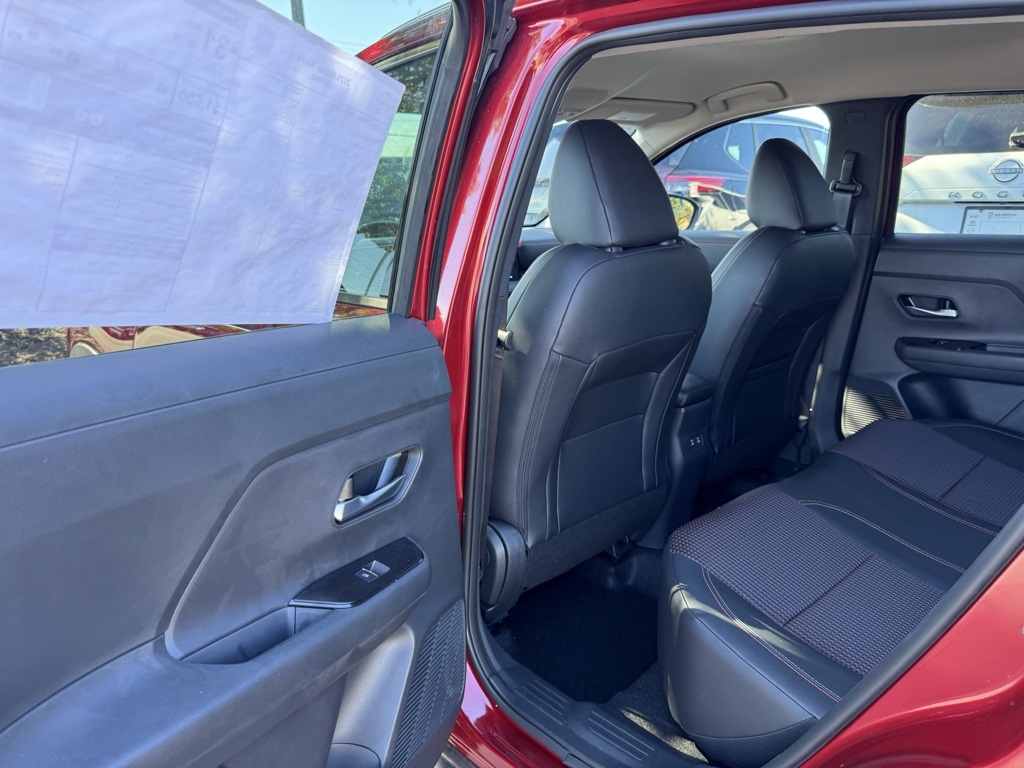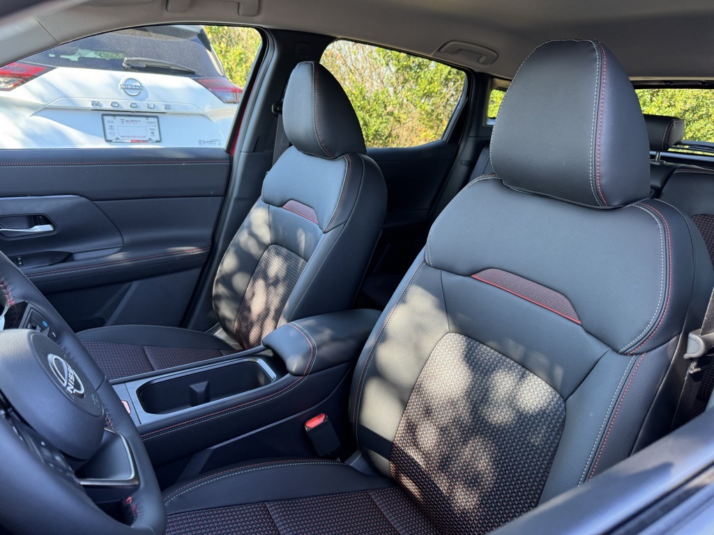 17" Alloy Wheels, 19" Alloy Wheels, 4-Wheel Disc Brakes, 6 Speakers, ABS brakes, Air Conditioning, Alloy wheels, AM/FM radio, Auto High-beam Headlights, Automatic temperature control, Brake assist, Bumpers: body-color, Carpeted Floor Mats & Underfloor Protector, Crossbars, Delay-off headlights, Driver door bin, Driver vanity mirror, Dual front impact airbags, Dual front side impact airbags, Electronic Stability Control, Emergency communication system: NissanConnect Services, Exterior Parking Camera Rear, Front anti-roll bar, Front Bucket Seats, Front Center Armrest, Front reading lights, Front wheel independent suspension, Fully automatic headlights, Garage door transmitter: myQ Connected Garage, Illuminated entry, Knee airbag, Leather Shift Knob, Leather steering wheel, Low tire pressure warning, NissanConnect featuring Apple CarPlay and Android Auto, Occupant sensing airbag, Outside temperature display, Overhead airbag, Overhead console, Panic alarm, Passenger door bin, Passenger vanity mirror, Power door mirrors, Power steering, Power windows, Premium Paint, Radio data system, Radio: AM/FM/SiriusXM Audio System, Rear anti-roll bar, Rear reading lights, Rear seat center armrest, Rear side impact airbag, Rear window defroster, Rear window wiper, Remote keyless entry, Security system, Speed control, Speed-sensing steering, Splash Guards, Split folding rear seat, Spoiler, Sport Leatherette w/Cloth Insert Seat Trim, Sport steering wheel, Steering wheel mounted audio controls, Tachometer, Telescoping steering wheel, Tilt steering wheel, Traction control, Trip computer, Turn signal indicator mirrors, and Variably intermittent wipers.