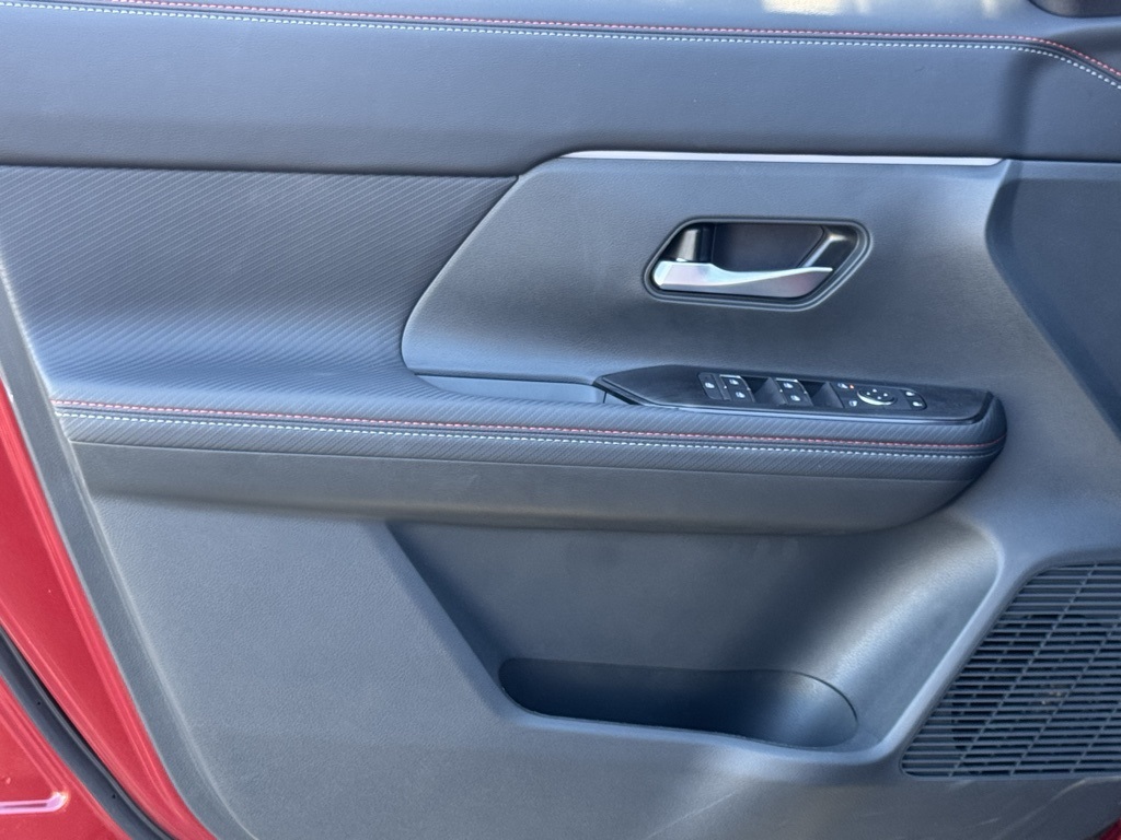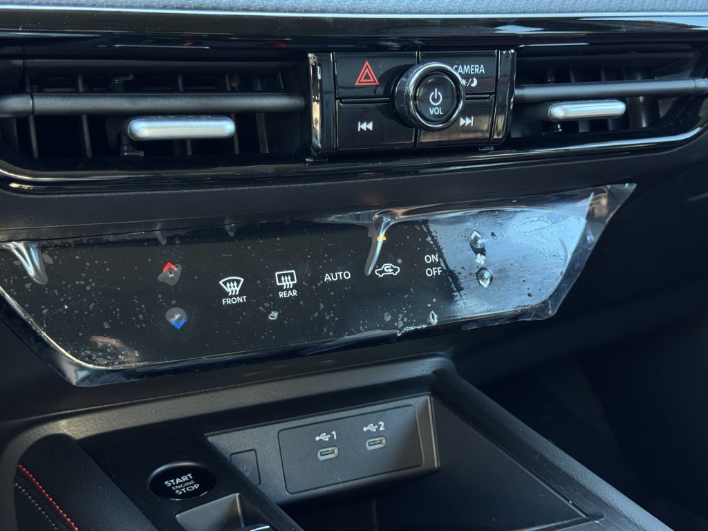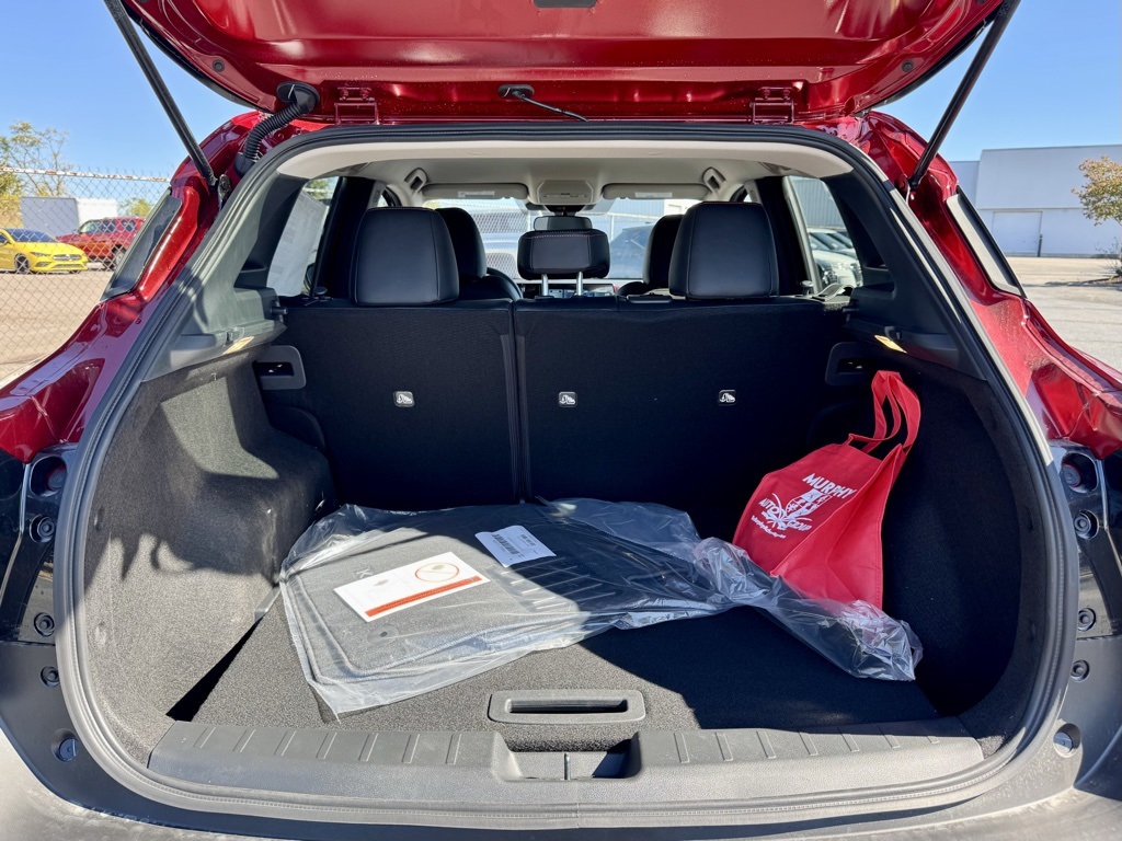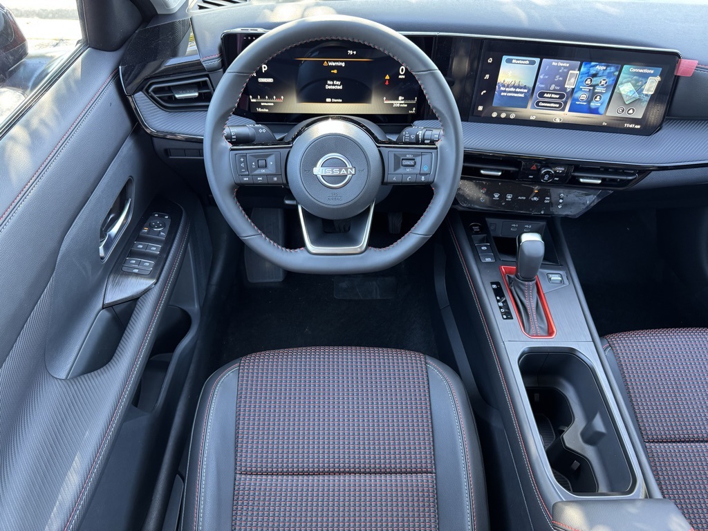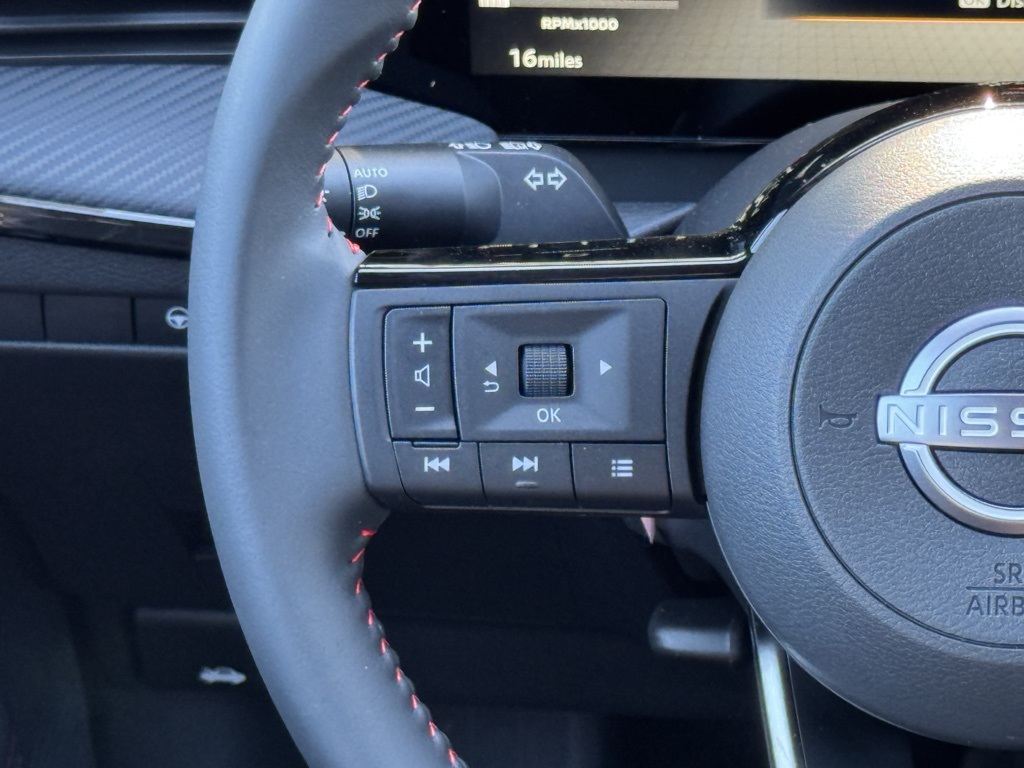 17" Alloy Wheels, 19" Alloy Wheels, 4-Wheel Disc Brakes, 6 Speakers, ABS brakes, Air Conditioning, Alloy wheels, AM/FM radio, Auto High-beam Headlights, Automatic temperature control, Brake assist, Bumpers: body-color, Carpeted Floor Mats & Underfloor Protector, Crossbars, Delay-off headlights, Driver door bin, Driver vanity mirror, Dual front impact airbags, Dual front side impact airbags, Electronic Stability Control, Emergency communication system: NissanConnect Services, Exterior Parking Camera Rear, Front anti-roll bar, Front Bucket Seats, Front Center Armrest, Front reading lights, Front wheel independent suspension, Fully automatic headlights, Garage door transmitter: myQ Connected Garage, Illuminated entry, Knee airbag, Leather Shift Knob, Leather steering wheel, Low tire pressure warning, NissanConnect featuring Apple CarPlay and Android Auto, Occupant sensing airbag, Outside temperature display, Overhead airbag, Overhead console, Panic alarm, Passenger door bin, Passenger vanity mirror, Power door mirrors, Power steering, Power windows, Premium Paint, Radio data system, Radio: AM/FM/SiriusXM Audio System, Rear anti-roll bar, Rear reading lights, Rear seat center armrest, Rear side impact airbag, Rear window defroster, Rear window wiper, Remote keyless entry, Security system, Speed control, Speed-sensing steering, Splash Guards, Split folding rear seat, Spoiler, Sport Leatherette w/Cloth Insert Seat Trim, Sport steering wheel, Steering wheel mounted audio controls, Tachometer, Telescoping steering wheel, Tilt steering wheel, Traction control, Trip computer, Turn signal indicator mirrors, and Variably intermittent wipers.