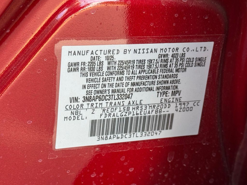 Cold Weather Package (Heated Front Seats, Heated Mirrors, and Rear Floor Heater Ducts), SR Premium Package (Bose 10 -Speaker Audio, Driver Seat-Mounted Supplemental Air Bag, Heated Steering Wheel, and Panoramic Moonroof), 17" Alloy Wheels, 19" Alloy Wheels, 4-Wheel Disc Brakes, 6 Speakers, ABS brakes, Air Conditioning, Alloy wheels, AM/FM radio, Auto High-beam Headlights, Automatic temperature control, Brake assist, Bumpers: body-color, Delay-off headlights, Driver door bin, Driver vanity mirror, Dual front impact airbags, Dual front side impact airbags, Electronic Stability Control, Emergency communication system: NissanConnect Services, Exterior Parking Camera Rear, Front anti-roll bar, Front Bucket Seats, Front Center Armrest, Front reading lights, Front wheel independent suspension, Fully automatic headlights, Garage door transmitter: myQ Connected Garage, Illuminated entry, Knee airbag, Leather Shift Knob, Leather steering wheel, Low tire pressure warning, NissanConnect featuring Apple CarPlay and Android Auto, Occupant sensing airbag, Outside temperature display, Overhead airbag, Overhead console, Panic alarm, Panoramic Headliner Illumination, Passenger door bin, Passenger vanity mirror, Power door mirrors, Power steering, Power windows, Premium Paint, Radio data system, Radio: AM/FM/SiriusXM Audio System, Rear anti-roll bar, Rear reading lights, Rear seat center armrest, Rear side impact airbag, Rear window defroster, Rear window wiper, Remote keyless entry, Security system, Speed control, Speed-sensing steering, Splash Guards, Split folding rear seat, Spoiler, Sport steering wheel, Steering wheel mounted audio controls, Tachometer, Telescoping steering wheel, Tilt steering wheel, Traction control, Trip computer, Turn signal indicator mirrors, and Variably intermittent wipers. Price includes all rebates: $1500 - Nissan Customer Cash. Exp. 05/04/2026