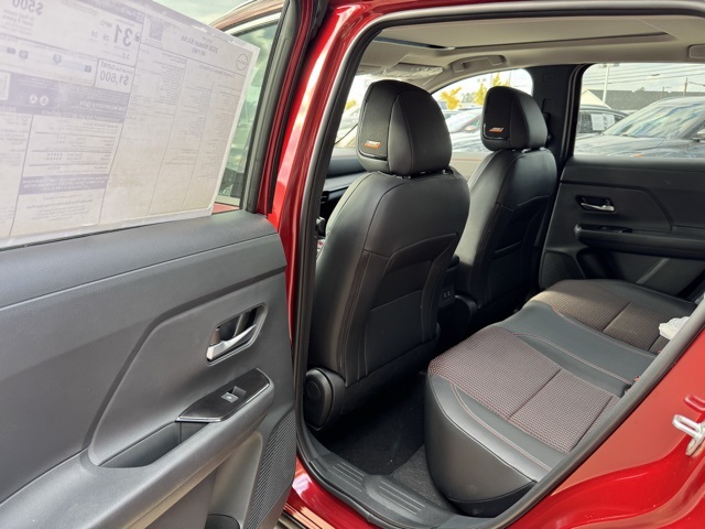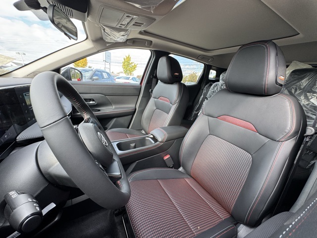 Cold Weather Package (Heated Front Seats, Heated Mirrors, and Rear Floor Heater Ducts), SR Premium Package (Bose 10 -Speaker Audio, Driver Seat-Mounted Supplemental Air Bag, Heated Steering Wheel, and Panoramic Moonroof), 17" Alloy Wheels, 4-Wheel Disc Brakes, 6 Speakers, ABS brakes, Air Conditioning, Alloy wheels, AM/FM radio, Auto High-beam Headlights, Automatic temperature control, Brake assist, Bumpers: body-color, Carpeted Floor Mats & Underfloor Protector, Delay-off headlights, Driver door bin, Driver vanity mirror, Dual front impact airbags, Dual front side impact airbags, Electronic Stability Control, Emergency communication system: NissanConnect Services, Exterior Parking Camera Rear, Front anti-roll bar, Front Bucket Seats, Front Center Armrest, Front reading lights, Front wheel independent suspension, Fully automatic headlights, Garage door transmitter: myQ Connected Garage, Illuminated entry, Knee airbag, Leather Shift Knob, Leather steering wheel, Low tire pressure warning, NissanConnect featuring Apple CarPlay and Android Auto, Occupant sensing airbag, Outside temperature display, Overhead airbag, Overhead console, Panic alarm, Passenger door bin, Passenger vanity mirror, Power door mirrors, Power steering, Power windows, Premium Paint, Radio data system, Radio: AM/FM/SiriusXM Audio System, Rear anti-roll bar, Rear reading lights, Rear seat center armrest, Rear side impact airbag, Rear window defroster, Rear window wiper, Remote keyless entry, Security system, Speed control, Speed-sensing steering, Splash Guards, Split folding rear seat, Spoiler, Sport Leatherette w/Cloth Insert Seat Trim, Sport steering wheel, Steering wheel mounted audio controls, Tachometer, Telescoping steering wheel, Tilt steering wheel, Traction control, Trip computer, Turn signal indicator mirrors, Variably intermittent wipers, and Wheels: 19" Dark Gray Alloy.