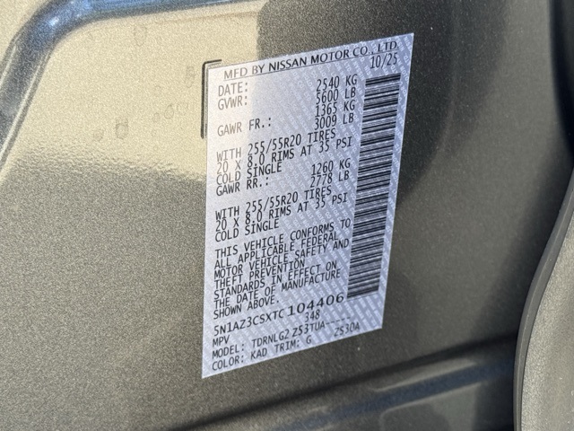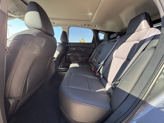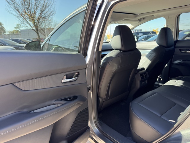 10 Speakers, 20" Alloy Wheels, 4-Wheel Disc Brakes, ABS brakes, Air Conditioning, Alloy wheels, AM/FM radio: SiriusXM w/360L, Auto High-beam Headlights, Auto-dimming Rear-View mirror, Automatic temperature control, Brake assist, Bumpers: body-color, Carpeted Floor & Cargo Mats, Child-Seat-Sensing Airbag, Compass, Delay-off headlights, Driver door bin, Driver vanity mirror, Dual front impact airbags, Dual front side impact airbags, Electronic Stability Control, Emergency communication system: NissanConnect Services, Four wheel independent suspension, Frameless Rearview Mirror w/UGDO, Front anti-roll bar, Front Bucket Seats, Front Center Armrest, Front dual zone A/C, Front reading lights, Fully automatic headlights, Garage door transmitter: myQ Connected Garage, Grained Splash Guards, Heated door mirrors, Heated Front Bucket Seats, Heated front seats, Heated steering wheel, Illuminated entry, Knee airbag, Low tire pressure warning, Memory seat, Navigation system: NissanConnect with Navigation and Services, Occupant sensing airbag, Outside temperature display, Overhead airbag, Overhead console, Panic alarm, Passenger door bin, Passenger vanity mirror, Power door mirrors, Power driver seat, Power Liftgate, Power moonroof: Panoramic, Power passenger seat, Power steering, Power windows, Prima-Tex Leatherette Seat Trim w/Perforation, Radio data system, Radio: NissanConnect w/Hybrid Radio, Rear anti-roll bar, Rear reading lights, Rear seat center armrest, Rear side impact airbag, Rear window defroster, Rear window wiper, Remote keyless entry, Security system, Speed control, Speed-Sensitive Wipers, Split folding rear seat, Spoiler, Steering wheel mounted audio controls, Tachometer, Telescoping steering wheel, Tilt steering wheel, Traction control, Trip computer, Turn signal indicator mirrors, Variably intermittent wipers, and Wireless Apple CarPlay/Wireless Android Auto.