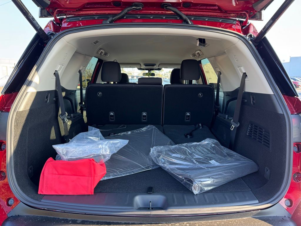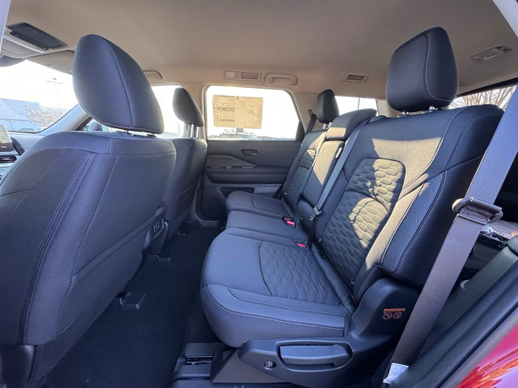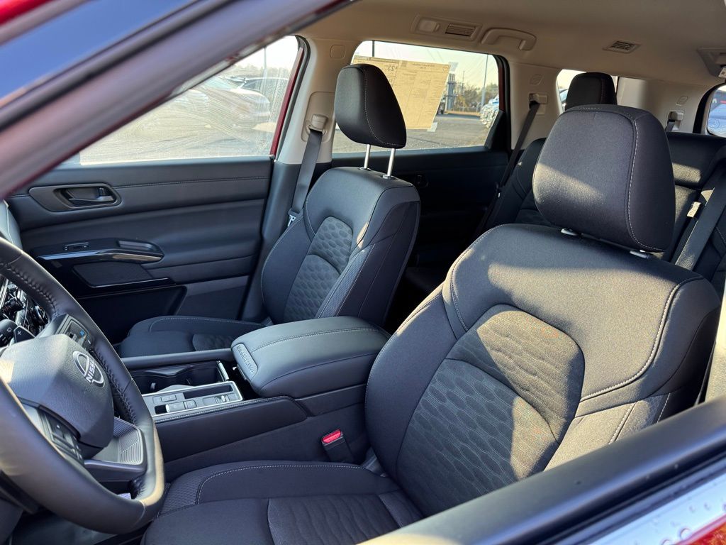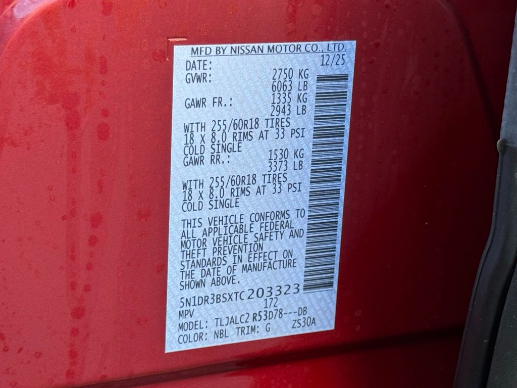 18" Painted Alloy Wheels, 3rd row seats: bench, 4-Piece Black Splash Guards, 4-Wheel Disc Brakes, 6 Speakers, ABS brakes, Air Conditioning, Alloy wheels, AM/FM radio: SiriusXM w/360L, Auto High-beam Headlights, Automatic temperature control, Bench Seat Carpeted Floor Mats, Brake assist, Bumpers: body-color, Cloth Seating Surfaces, Cross Bars, Delay-off headlights, Driver door bin, Driver vanity mirror, Dual front impact airbags, Dual front side impact airbags, Electronic Stability Control, Emergency communication system: NissanConnect Services, Four wheel independent suspension, Front anti-roll bar, Front Bucket Seats, Front Center Armrest, Front dual zone A/C, Front reading lights, Fully automatic headlights, Garage door transmitter: myQ Connected Garage, Heated door mirrors, Heated Front Bucket Seats, Heated front seats, Illuminated entry, Knee airbag, Low tire pressure warning, NissanConnect featuring Apple CarPlay and Android Auto, Occupant sensing airbag, Outside temperature display, Overhead airbag, Overhead console, Panic alarm, Passenger door bin, Passenger vanity mirror, Power door mirrors, Power driver seat, Power Liftgate, Power steering, Power windows, Premium Paint, Radio data system, Radio: AM/FM Audio System with NissanConnect, Rear air conditioning, Rear anti-roll bar, Rear reading lights, Rear seat center armrest, Rear side impact airbag, Rear window defroster, Rear window wiper, Reclining 3rd row seat, Remote keyless entry, Security system, Speed control, Speed-sensing steering, Split folding rear seat, Spoiler, Steering wheel mounted audio controls, Tachometer, Telescoping steering wheel, Tilt steering wheel, Traction control, Trip computer, and Variably intermittent wipers. Price includes all rebates: $2000 - Nissan Customer Cash. Exp. 03/31/2026