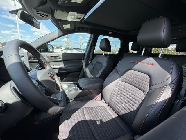 Rock Creek Premium Package (2nd-Row Climate Control Panel, Heated Steering Wheel, and Panoramic Moonroof), 18" Unique Alloy Wheels, 2nd-Row Captain Chairs, 2nd-Row Removable Centre Console, 3rd row seats: bench, 4-Piece Black Splash Guards, 4-Wheel Disc Brakes, 6 Speakers, ABS brakes, Air Conditioning, Alloy wheels, AM/FM radio: SiriusXM w/360L, Auto High-beam Headlights, Automatic temperature control, Brake assist, Delay-off headlights, Driver door bin, Driver vanity mirror, Dual front impact airbags, Dual front side impact airbags, Electronic Stability Control, Emergency communication system: NissanConnect Services, Four wheel independent suspension, Front anti-roll bar, Front Bucket Seats, Front Center Armrest, Front dual zone A/C, Front fog lights, Front reading lights, Fully automatic headlights, Garage door transmitter: myQ Connected Garage, Heated door mirrors, Heated Front Bucket Seats, Heated front seats, Illuminated entry, Knee airbag, Leatherette and Cloth Seating Surfaces, Low tire pressure warning, Nissan USB Charging Cable Set, NissanConnect featuring Apple CarPlay and Android Auto, Occupant sensing airbag, Outside temperature display, Overhead airbag, Overhead console, Panic alarm, Passenger door bin, Passenger vanity mirror, Power door mirrors, Power driver seat, Power Liftgate, Power steering, Power windows, Radio data system, Radio: AM/FM Audio System with NissanConnect, Rear air conditioning, Rear anti-roll bar, Rear reading lights, Rear side impact airbag, Rear window defroster, Rear window wiper, Reclining 3rd row seat, Remote keyless entry, Roof rack, Security system, Speed control, Speed-sensing steering, Split folding rear seat, Spoiler, Steering wheel mounted audio controls, Tachometer, Telescoping steering wheel, Tilt steering wheel, Traction control, Trip computer, Turn signal indicator mirrors, and Variably intermittent wipers. Price includes: $3500 - Nissan Customer Cash. Exp. 05/04/2026 Price includes dealer added accessories.