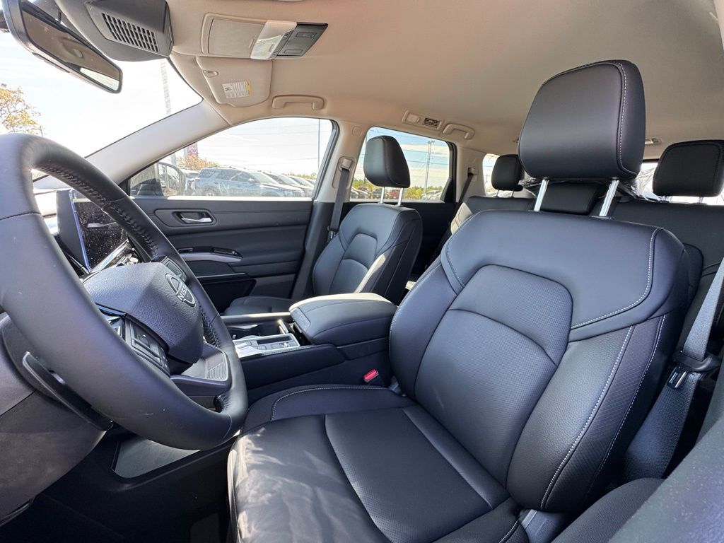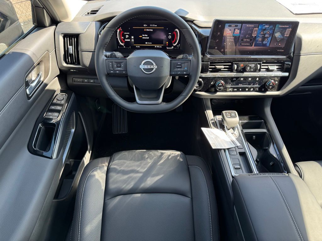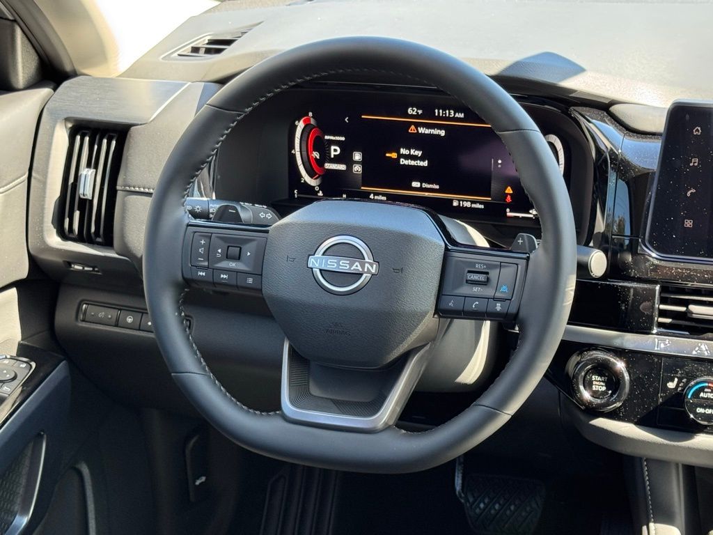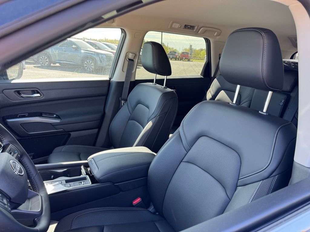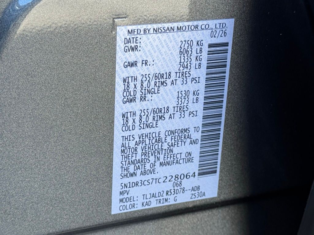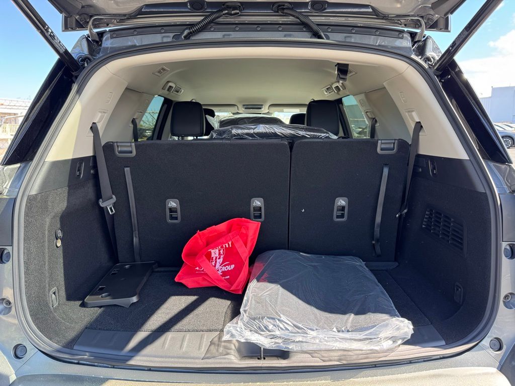 18" Machined Alloy Wheels, 3rd row seats: bench, 4-Piece Black Splash Guards, 4-Wheel Disc Brakes, 6 Speakers, ABS brakes, Air Conditioning, Alloy wheels, AM/FM radio: SiriusXM w/360L, Auto High-beam Headlights, Auto-dimming Rear-View mirror, Automatic temperature control, Bench Seat Carpeted Floor Mats, Brake assist, Bumpers: body-color, Cross Bars, Delay-off headlights, Driver door bin, Driver vanity mirror, Dual front impact airbags, Dual front side impact airbags, Electronic Stability Control, Emergency communication system: NissanConnect Services, Four wheel independent suspension, Front anti-roll bar, Front Bucket Seats, Front Center Armrest, Front dual zone A/C, Front reading lights, Fully automatic headlights, Garage door transmitter: HomeLink, Heated door mirrors, Heated Front Bucket Seats, Heated front seats, Heated steering wheel, Illuminated entry, Knee airbag, Low tire pressure warning, NissanConnect featuring Apple CarPlay and Android Auto, Occupant sensing airbag, Outside temperature display, Overhead airbag, Overhead console, Panic alarm, Passenger door bin, Passenger vanity mirror, Power door mirrors, Power driver seat, Power Liftgate, Power steering, Power windows, Radio data system, Radio: AM/FM Audio System with NissanConnect, Rear air conditioning, Rear anti-roll bar, Rear reading lights, Rear seat center armrest, Rear side impact airbag, Rear window defroster, Rear window wiper, Reclining 3rd row seat, Remote keyless entry, Security system, Speed control, Speed-sensing steering, Split folding rear seat, Spoiler, Steering wheel mounted audio controls, Tachometer, TailorFit Appointed Seating Surfaces, Telescoping steering wheel, Tilt steering wheel, Traction control, Trip computer, Turn signal indicator mirrors, and Variably intermittent wipers. Price includes all rebates: $3500 - Nissan Customer Cash. Exp. 05/04/2026