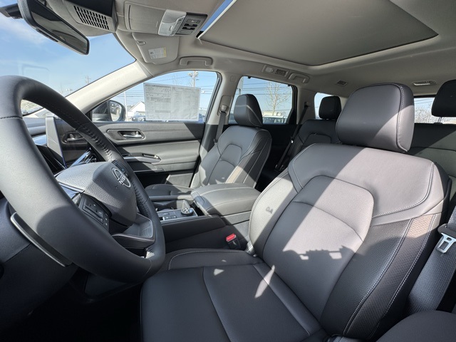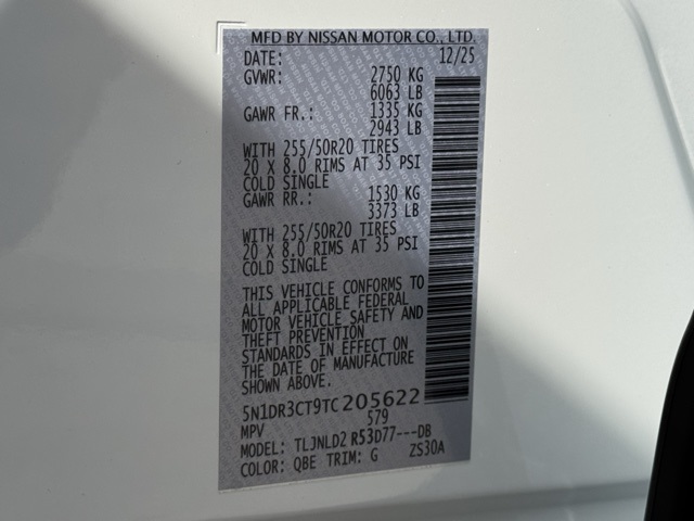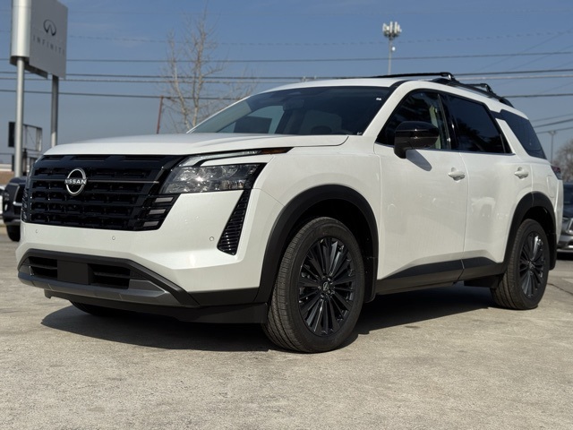 SL Premium Package (2nd Row Manual Sunshades, Bose Premium Audio System, Heated Rear Seats, Panoramic Moonroof, Tow Hitch Receiver and Harness, and Wheels: 20" Machined Alloy with Dark Metallic Gray Finish), 18" Machined Alloy Wheels, 2nd-Row Captain Chairs, 3rd row seats: bench, 4-Piece Black Splash Guards, 4-Wheel Disc Brakes, 6 Speakers, ABS brakes, Air Conditioning, Alloy wheels, AM/FM radio: SiriusXM w/360L, Auto High-beam Headlights, Auto-dimming Rear-View mirror, Automatic temperature control, Brake assist, Bumpers: body-color, Captain's Chairs Carpeted Floor Mats, Cross Bars, Delay-off headlights, Driver door bin, Driver vanity mirror, Dual front impact airbags, Dual front side impact airbags, Electronic Stability Control, Emergency communication system: NissanConnect Services, Four wheel independent suspension, Front anti-roll bar, Front Bucket Seats, Front Center Armrest, Front dual zone A/C, Front reading lights, Fully automatic headlights, Garage door transmitter: HomeLink, Heated door mirrors, Heated Front Bucket Seats, Heated front seats, Heated steering wheel, Illuminated entry, Knee airbag, Low tire pressure warning, NissanConnect featuring Apple CarPlay and Android Auto, Occupant sensing airbag, Outside temperature display, Overhead airbag, Overhead console, Panic alarm, Passenger door bin, Passenger vanity mirror, Power door mirrors, Power driver seat, Power Liftgate, Power steering, Power windows, Premium Paint, Radio data system, Radio: AM/FM Audio System with NissanConnect, Rear air conditioning, Rear anti-roll bar, Rear reading lights, Rear seat center armrest, Rear side impact airbag, Rear window defroster, Rear window wiper, Reclining 3rd row seat, Remote keyless entry, Removable Center Console, Security system, Speed control, Speed-sensing steering, Split folding rear seat, Spoiler, Steering wheel mounted audio controls, Tachometer, TailorFit Appointed Seating Surfaces, Telescoping steering wheel, Tilt steering wheel, Traction control, Trip computer, Turn signal indicator mirrors, and Variably intermittent wipers. Price includes: $2000 - Nissan Customer Cash. Exp. 03/02/2026 Price includes dealer added accessories.