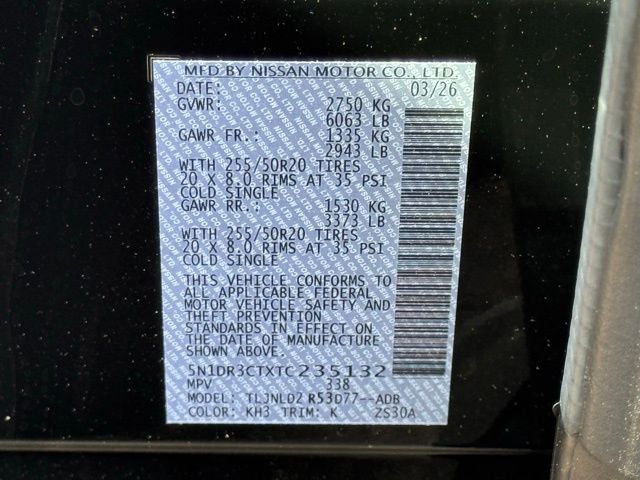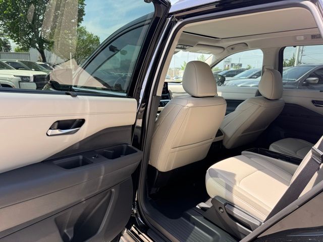 SL Premium Package (2nd Row Manual Sunshades, Bose Premium Audio System, Heated Rear Seats, Panoramic Moonroof, Tow Hitch Receiver and Harness, and Wheels: 20" Machined Alloy with Dark Metallic Gray Finish), 18" Machined Alloy Wheels, 2nd-Row Captain Chairs, 3rd row seats: bench, 4-Piece Black Splash Guards, 4-Wheel Disc Brakes, 6 Speakers, ABS brakes, Air Conditioning, Alloy wheels, AM/FM radio: SiriusXM w/360L, Auto High-beam Headlights, Auto-dimming Rear-View mirror, Automatic temperature control, Brake assist, Bumpers: body-color, Captain's Chairs Carpeted Floor Mats, Delay-off headlights, Driver door bin, Driver vanity mirror, Dual front impact airbags, Dual front side impact airbags, Electronic Stability Control, Emergency communication system: NissanConnect Services, Four wheel independent suspension, Front anti-roll bar, Front Bucket Seats, Front Center Armrest, Front dual zone A/C, Front reading lights, Fully automatic headlights, Garage door transmitter: HomeLink, Heated door mirrors, Heated Front Bucket Seats, Heated front seats, Heated steering wheel, Illuminated entry, Knee airbag, Low tire pressure warning, NissanConnect featuring Apple CarPlay and Android Auto, Occupant sensing airbag, Outside temperature display, Overhead airbag, Overhead console, Panic alarm, Passenger door bin, Passenger vanity mirror, Power door mirrors, Power driver seat, Power Liftgate, Power steering, Power windows, Radio data system, Radio: AM/FM Audio System with NissanConnect, Rear air conditioning, Rear anti-roll bar, Rear reading lights, Rear seat center armrest, Rear side impact airbag, Rear window defroster, Rear window wiper, Reclining 3rd row seat, Remote keyless entry, Removable Center Console, Security system, Speed control, Speed-sensing steering, Split folding rear seat, Spoiler, Steering wheel mounted audio controls, Tachometer, TailorFit Appointed Seating Surfaces, Telescoping steering wheel, Tilt steering wheel, Traction control, Trip computer, Turn signal indicator mirrors, and Variably intermittent wipers. Price includes: $3500 - Nissan Customer Cash. Exp. 05/04/2026 Price includes dealer added accessories.