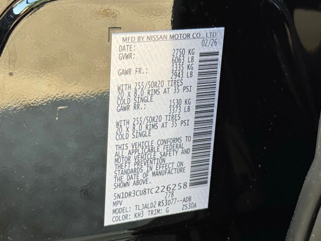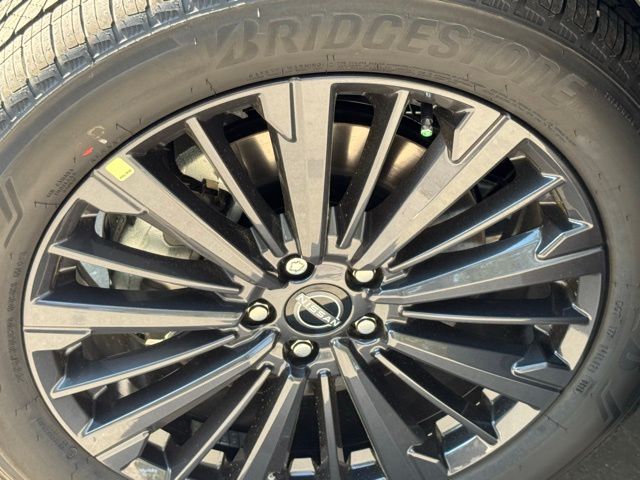 SL Premium Package (2nd Row Manual Sunshades, Bose Premium Audio System, Heated Rear Seats, Panoramic Moonroof, Tow Hitch Receiver and Harness, and Wheels: 20" Machined Alloy with Dark Metallic Gray Finish), 18" Machined Alloy Wheels, 2nd-Row Captain Chairs, 3rd row seats: bench, 4-Piece Black Splash Guards, 4-Wheel Disc Brakes, 6 Speakers, ABS brakes, Air Conditioning, Alloy wheels, AM/FM radio: SiriusXM w/360L, Auto High-beam Headlights, Auto-dimming Rear-View mirror, Automatic temperature control, Brake assist, Bumpers: body-color, Captain's Chairs Carpeted Floor Mats, Cross Bars, Delay-off headlights, Driver door bin, Driver vanity mirror, Dual front impact airbags, Dual front side impact airbags, Electronic Stability Control, Emergency communication system: NissanConnect Services, Four wheel independent suspension, Front anti-roll bar, Front Bucket Seats, Front Center Armrest, Front dual zone A/C, Front reading lights, Fully automatic headlights, Garage door transmitter: HomeLink, Heated door mirrors, Heated Front Bucket Seats, Heated front seats, Heated steering wheel, Illuminated entry, Knee airbag, Low tire pressure warning, NissanConnect featuring Apple CarPlay and Android Auto, Occupant sensing airbag, Outside temperature display, Overhead airbag, Overhead console, Panic alarm, Passenger door bin, Passenger vanity mirror, Power door mirrors, Power driver seat, Power Liftgate, Power steering, Power windows, Radio data system, Radio: AM/FM Audio System with NissanConnect, Rear air conditioning, Rear anti-roll bar, Rear reading lights, Rear seat center armrest, Rear side impact airbag, Rear window defroster, Rear window wiper, Reclining 3rd row seat, Remote keyless entry, Removable Center Console, Security system, Speed control, Speed-sensing steering, Split folding rear seat, Spoiler, Steering wheel mounted audio controls, Tachometer, TailorFit Appointed Seating Surfaces, Telescoping steering wheel, Tilt steering wheel, Traction control, Trip computer, Turn signal indicator mirrors, and Variably intermittent wipers. Price includes: $3500 - Nissan Customer Cash. Exp. 05/04/2026 Price includes dealer added accessories.