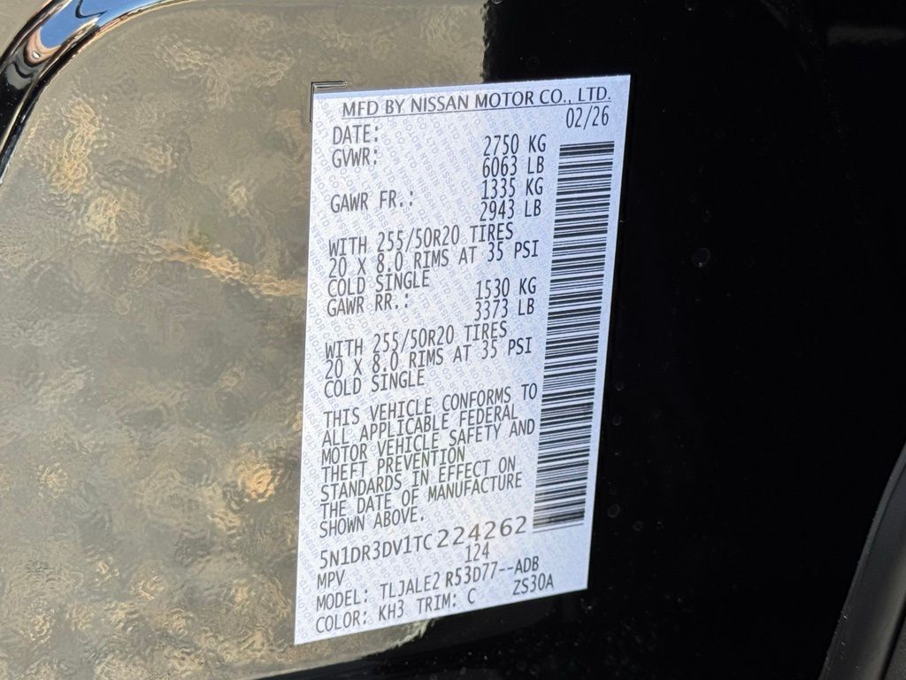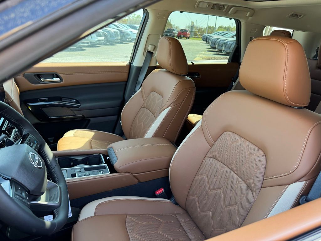Cargo Package (Cargo Area Protector, Cargo Net, and First Aid), Platinum Captain Chairs Package (2nd-Row Captain Chairs and 2nd-Row Removable Centre Console), 13 Speakers, 3rd row seats: bench, 4-Piece Black Splash Guards, 4-Wheel Disc Brakes, ABS brakes, Air Conditioning, Alloy wheels, AM/FM radio: SiriusXM w/360L, Auto High-beam Headlights, Auto tilt-away steering wheel, Auto-dimming Rear-View mirror, Automatic temperature control, Bodyside moldings, Bose Premium Audio System, Brake assist, Bumpers: body-color, Captain's Chairs Carpeted Floor Mats, Climate Controlled Front Bucket Seats, Cross Bars, Delay-off headlights, Driver door bin, Driver vanity mirror, Dual front impact airbags, Dual front side impact airbags, Electronic Stability Control, Emergency communication system: NissanConnect Services, Four wheel independent suspension, Front anti-roll bar, Front Bucket Seats, Front Center Armrest, Front dual zone A/C, Front reading lights, Fully automatic headlights, Garage door transmitter: HomeLink, Heads-Up Display, Heated door mirrors, Heated front seats, Heated rear seats, Heated steering wheel, Illuminated entry, Knee airbag, Low tire pressure warning, Memory seat, NissanConnect featuring Apple CarPlay and Android Auto, Occupant sensing airbag, Outside temperature display, Overhead airbag, Overhead console, Panic alarm, Passenger door bin, Passenger vanity mirror, Power door mirrors, Power driver seat, Power Liftgate, Power moonroof, Power passenger seat, Power steering, Power windows, Radio data system, Radio: AM/FM Audio System with NissanConnect, Rain sensing wipers, Rear air conditioning, Rear anti-roll bar, Rear reading lights, Rear seat center armrest, Rear side impact airbag, Rear window defroster, Rear window wiper, Reclining 3rd row seat, Remote keyless entry, Security system, Semi-Aniline Leather-Appointed Seating Surfaces, Speed control, Speed-sensing steering, Speed-Sensitive Wipers, Split folding rear seat, Spoiler, Steering wheel memory, Steering wheel mounted audio controls, Tachometer, Telescoping steering wheel, Tilt steering wheel, Traction control, Trip computer, Turn signal indicator mirrors, Variably intermittent wipers, Ventilated front seats, and Wheels: 20" Machined Alloy. Price includes all rebates: $3500 - Nissan Customer Cash. Exp. 05/04/2026