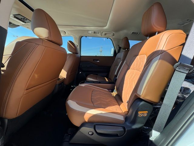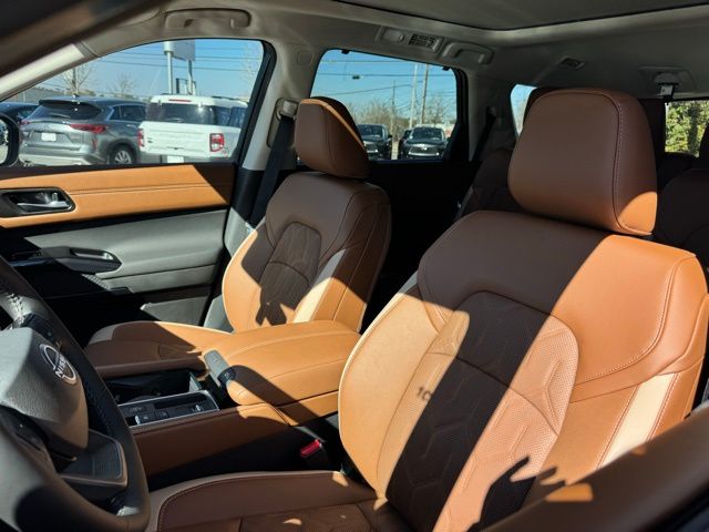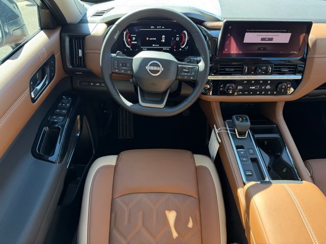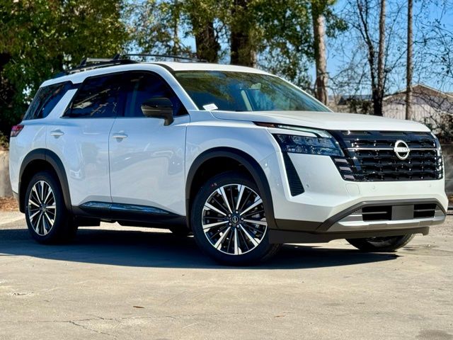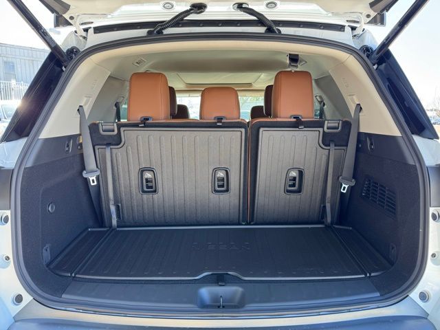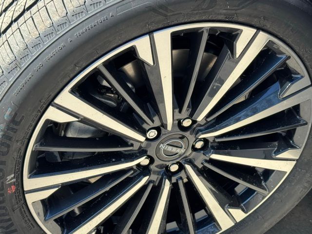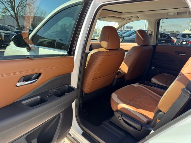 Cargo Package (Cargo Area Protector, Cargo Net, and First Aid), Platinum Captain Chairs Package (2nd-Row Captain Chairs and 2nd-Row Removable Centre Console), 13 Speakers, 3rd row seats: bench, 4-Piece Black Splash Guards, 4-Wheel Disc Brakes, ABS brakes, Air Conditioning, Alloy wheels, AM/FM radio: SiriusXM w/360L, Auto High-beam Headlights, Auto tilt-away steering wheel, Auto-dimming Rear-View mirror, Automatic temperature control, Bodyside moldings, Bose Premium Audio System, Brake assist, Bumpers: body-color, Captain's Chairs Carpeted Floor Mats, Climate Controlled Front Bucket Seats, Cross Bars, Delay-off headlights, Driver door bin, Driver vanity mirror, Dual front impact airbags, Dual front side impact airbags, Electronic Stability Control, Emergency communication system: NissanConnect Services, Four wheel independent suspension, Front anti-roll bar, Front Bucket Seats, Front Center Armrest, Front dual zone A/C, Front reading lights, Fully automatic headlights, Garage door transmitter: HomeLink, Heads-Up Display, Heated door mirrors, Heated front seats, Heated rear seats, Heated steering wheel, Illuminated entry, Knee airbag, Low tire pressure warning, Memory seat, NissanConnect featuring Apple CarPlay and Android Auto, Occupant sensing airbag, Outside temperature display, Overhead airbag, Overhead console, Panic alarm, Passenger door bin, Passenger vanity mirror, Power door mirrors, Power driver seat, Power Liftgate, Power moonroof, Power passenger seat, Power steering, Power windows, Premium Paint, Radio data system, Radio: AM/FM Audio System with NissanConnect, Rain sensing wipers, Rear air conditioning, Rear anti-roll bar, Rear reading lights, Rear seat center armrest, Rear side impact airbag, Rear window defroster, Rear window wiper, Reclining 3rd row seat, Remote keyless entry, Security system, Semi-Aniline Leather-Appointed Seating Surfaces, Speed control, Speed-sensing steering, Speed-Sensitive Wipers, Split folding rear seat, Spoiler, Steering wheel memory, Steering wheel mounted audio controls, Tachometer, Telescoping steering wheel, Tilt steering wheel, Traction control, Trip computer, Turn signal indicator mirrors, Variably intermittent wipers, Ventilated front seats, and Wheels: 20" Machined Alloy. Price includes: $3500 - Nissan Customer Cash. Exp. 05/04/2026 Price includes dealer added accessories.