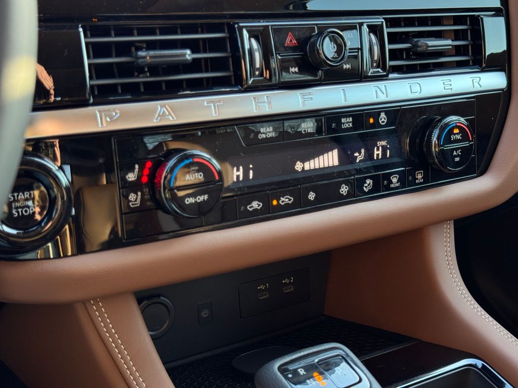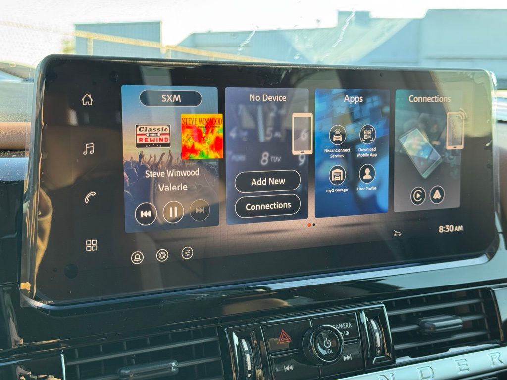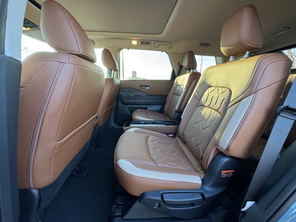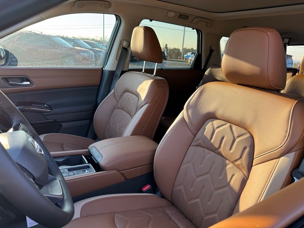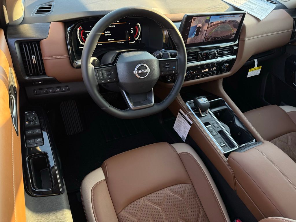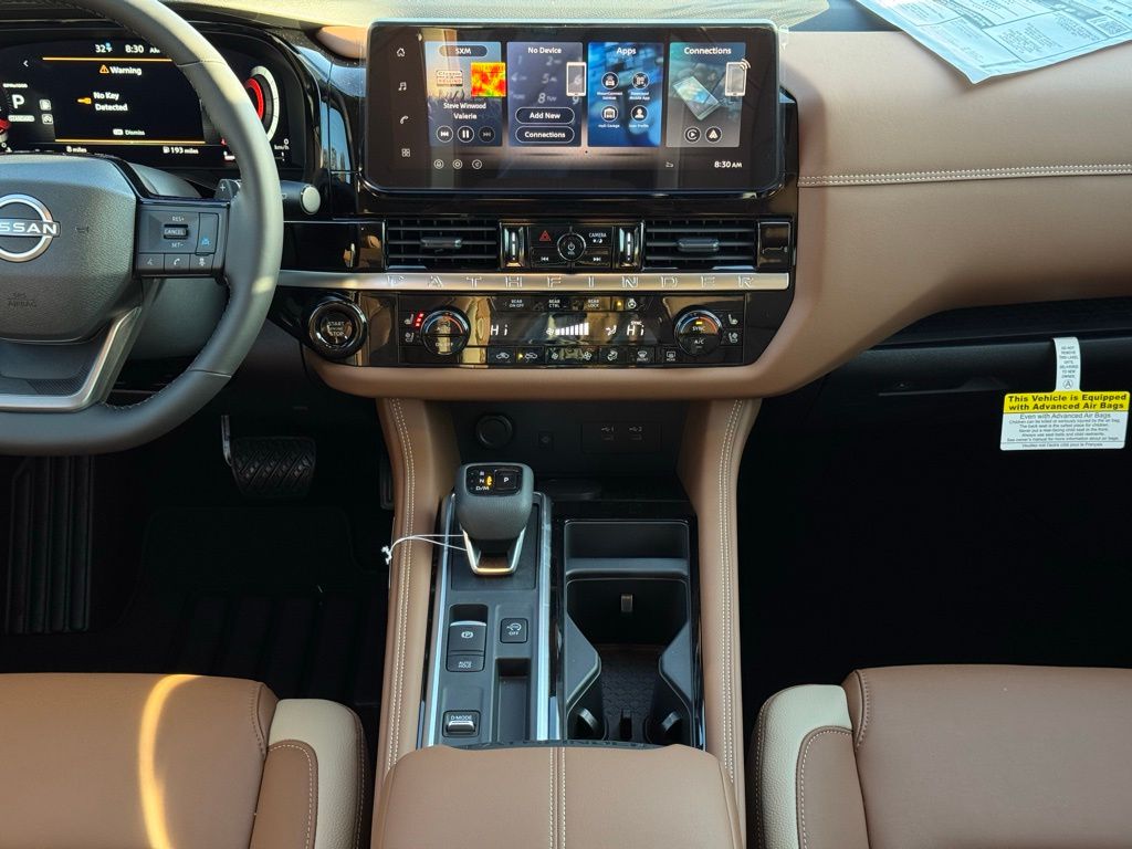 Cargo Package (Cargo Area Protector, Cargo Net, and First Aid), Platinum Captain Chairs Package (2nd-Row Captain Chairs and 2nd-Row Removable Centre Console), 13 Speakers, 3rd row seats: bench, 4-Piece Black Splash Guards, 4-Wheel Disc Brakes, ABS brakes, Air Conditioning, Alloy wheels, AM/FM radio: SiriusXM w/360L, Auto High-beam Headlights, Auto tilt-away steering wheel, Auto-dimming Rear-View mirror, Automatic temperature control, Bodyside moldings, Bose Premium Audio System, Brake assist, Bumpers: body-color, Captain's Chairs Carpeted Floor Mats, Climate Controlled Front Bucket Seats, Cross Bars, Delay-off headlights, Driver door bin, Driver vanity mirror, Dual front impact airbags, Dual front side impact airbags, Electronic Stability Control, Emergency communication system: NissanConnect Services, Four wheel independent suspension, Front anti-roll bar, Front Bucket Seats, Front Center Armrest, Front dual zone A/C, Front reading lights, Fully automatic headlights, Garage door transmitter: HomeLink, Heads-Up Display, Heated door mirrors, Heated front seats, Heated rear seats, Heated steering wheel, Illuminated entry, Knee airbag, Low tire pressure warning, Memory seat, NissanConnect featuring Apple CarPlay and Android Auto, Occupant sensing airbag, Outside temperature display, Overhead airbag, Overhead console, Panic alarm, Passenger door bin, Passenger vanity mirror, Power door mirrors, Power driver seat, Power Liftgate, Power moonroof, Power passenger seat, Power steering, Power windows, Premium Paint, Radio data system, Radio: AM/FM Audio System with NissanConnect, Rain sensing wipers, Rear air conditioning, Rear anti-roll bar, Rear reading lights, Rear seat center armrest, Rear side impact airbag, Rear window defroster, Rear window wiper, Reclining 3rd row seat, Remote keyless entry, Security system, Semi-Aniline Leather-Appointed Seating Surfaces, Speed control, Speed-sensing steering, Speed-Sensitive Wipers, Split folding rear seat, Spoiler, Steering wheel memory, Steering wheel mounted audio controls, Tachometer, Telescoping steering wheel, Tilt steering wheel, Traction control, Trip computer, Turn signal indicator mirrors, Variably intermittent wipers, Ventilated front seats, and Wheels: 20" Machined Alloy. Price includes all rebates: $3500 - Nissan Customer Cash. Exp. 05/04/2026